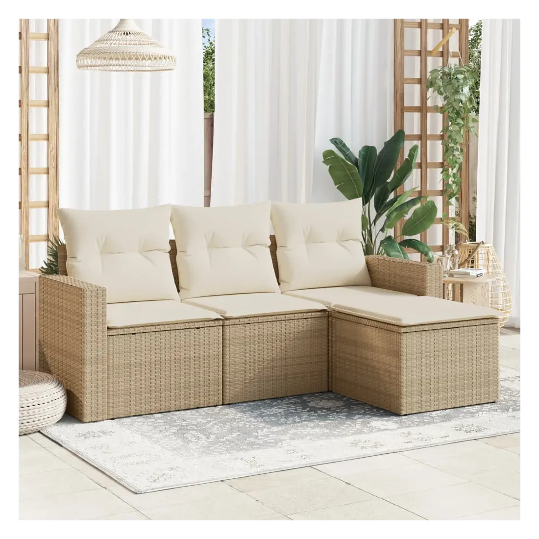 Cet ensemble de canapés de jardin est le complément parfait de votre arrière-cour, terrasse ou patio, offrant un espace confortable et accueillant pour discuter avec la famille et les amis ou simplement se détendre et profiter de l'extérieur. Matériau durable : la résine tressée, également connue sous le nom de poly rotin, est un matériau synthétique solide et nécessitant peu d'entretien qui ressemble au rotin naturel. Il est léger, facile à nettoyer et couramment utilisé pour les meubles d'extérieur en raison de sa durabilité et de ses propriétés de résistance aux intempéries.Fonction de rangement avec sac résistant à l'eau : chaque siège de jardin dispose d'un espace de rangement sous l'assise, complété par un sac résistant à l'eau pour ranger les coussins, les jouets et d'autres objets. Les sacs intérieurs sont dotés d'un couvercle et peuvent être solidement fixés aux sièges à l'aide de bandes auto-agrippantes pour plus de stabilité.Expérience d'assise confortable : ce mobilier d'extérieur, doté de coussins épais, offre une expérience d'assise confortable.Housse amovible et lavable : ces coussins de siège sont dotés de housses amovibles pour un lavage et un entretien faciles.Conception modulaire : cet ensemble de meubles d'extérieur a une conception modulaire, ce qui le rend complètement flexible et facile à déplacer, afin que vous puissiez créer un agencement de meubles d'extérieur personnalisé. Bon à savoir :Pour que vos meubles d'extérieur restent beaux, nous vous recommandons de les protéger avec une housse imperméable.