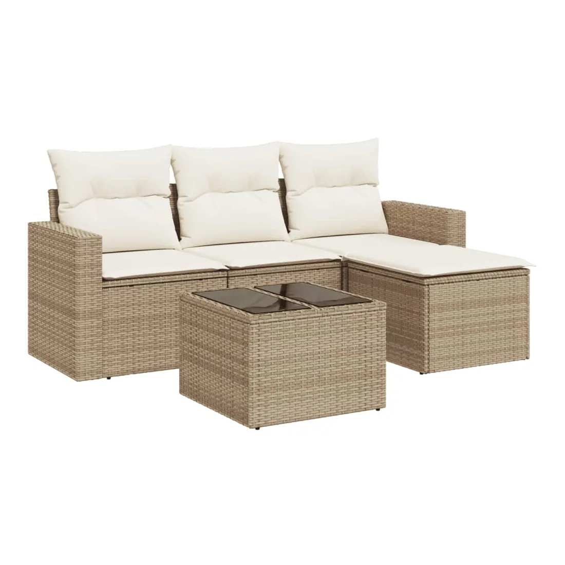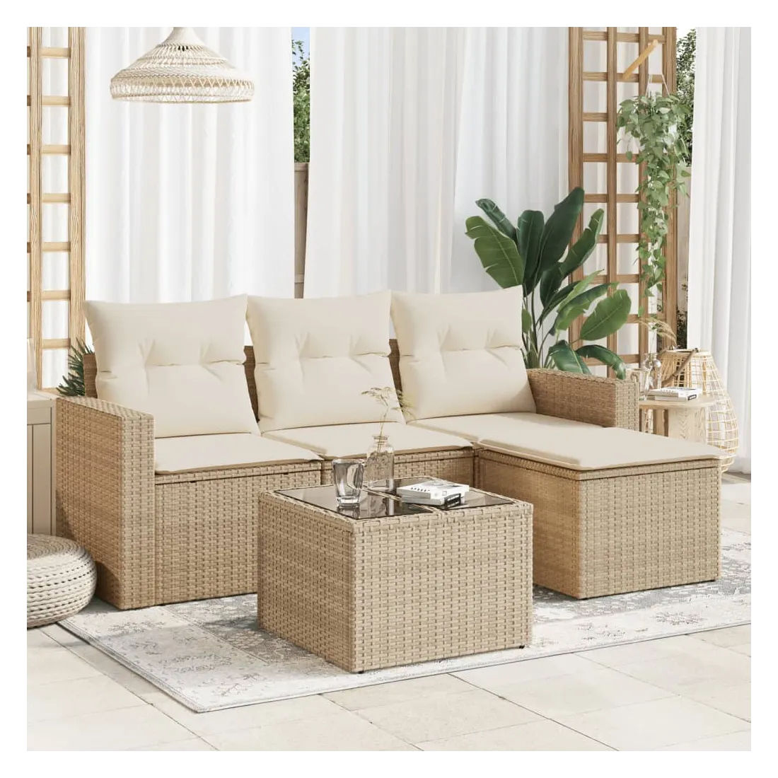 Cet ensemble de canapés de jardin est le complément parfait de votre arrière-cour, terrasse ou patio, offrant un espace confortable et accueillant pour discuter avec la famille et les amis ou simplement se détendre et profiter de l'extérieur. Matériau durable : la résine tressée, également connue sous le nom de poly rotin, est un matériau synthétique solide et nécessitant peu d'entretien qui ressemble au rotin naturel. Il est léger, facile à nettoyer et couramment utilisé pour les meubles d'extérieur en raison de sa durabilité et de ses propriétés de résistance aux intempéries.Fonction de rangement avec sac résistant à l'eau : chaque siège de jardin dispose d'un espace de rangement sous l'assise, complété par un sac résistant à l'eau pour ranger les coussins, les jouets et d'autres objets. Les sacs intérieurs sont dotés d'un couvercle et peuvent être solidement fixés aux sièges à l'aide de bandes auto-agrippantes pour plus de stabilité.Dessus en verre : le dessus de la table d'extérieur est fabriqué en verre trempé solide et durable, ce qui le rend facile à nettoyer avec un chiffon humide et ajoute une touche d'élégance à votre espace extérieur.Housse amovible et lavable : ces coussins de siège sont dotés de housses amovibles pour un lavage et un entretien faciles.Conception modulaire : cet ensemble de meubles d'extérieur a une conception modulaire, ce qui le rend complètement flexible et facile à déplacer, afin que vous puissiez créer un agencement de meubles d'extérieur personnalisé. Bon à savoir :Pour que vos meubles d'extérieur restent beaux, nous vous recommandons de les protéger avec une housse imperméable.