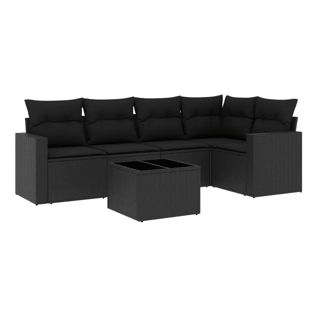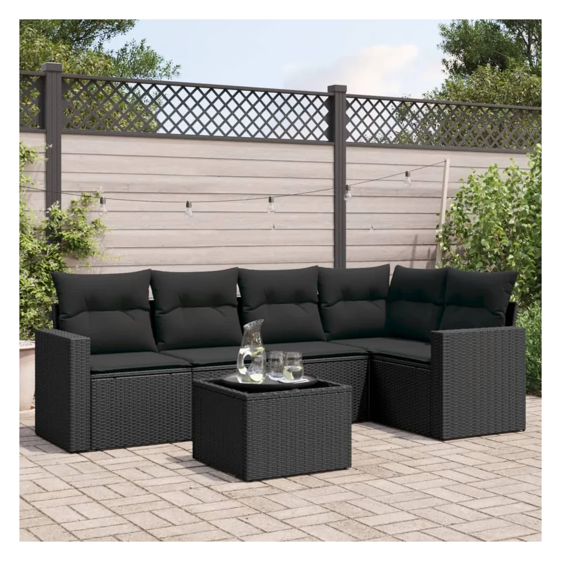Salon de jardin 6 pcs avec coussins noir résine tressée