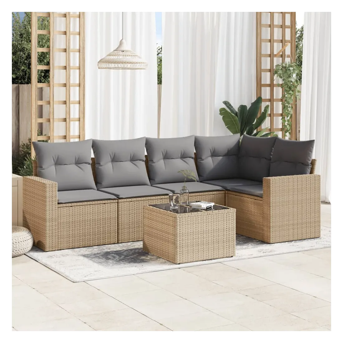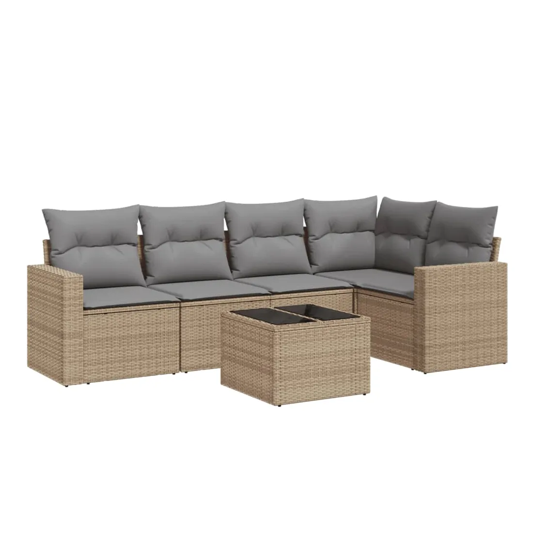 Salon de jardin avec coussins 6 pcs beige résine tressée