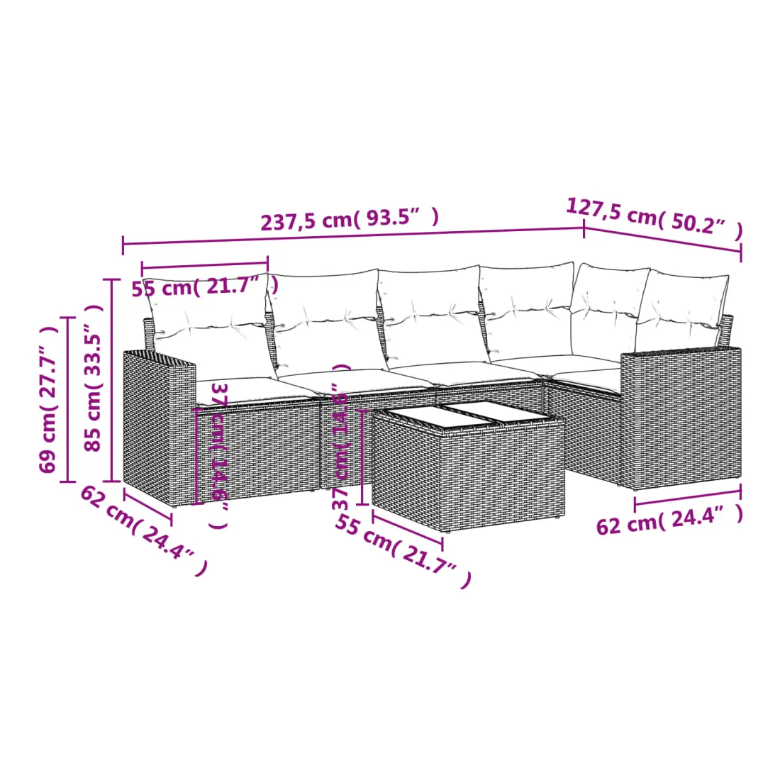 • Dimensions : 55 x 55 x 37 cm (L x l x H)