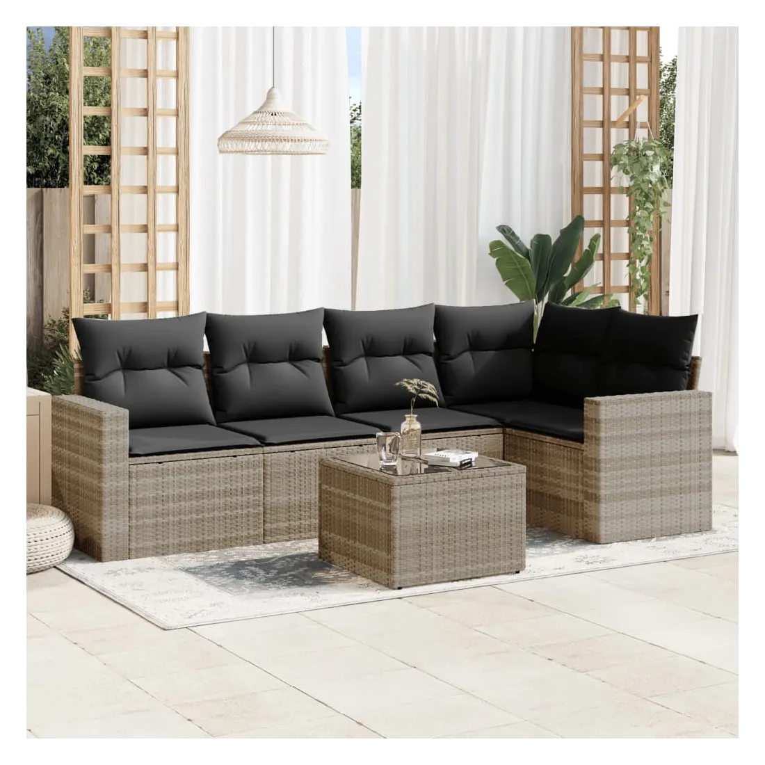 Salon de jardin 6 pcs avec coussins gris clair résine tressée