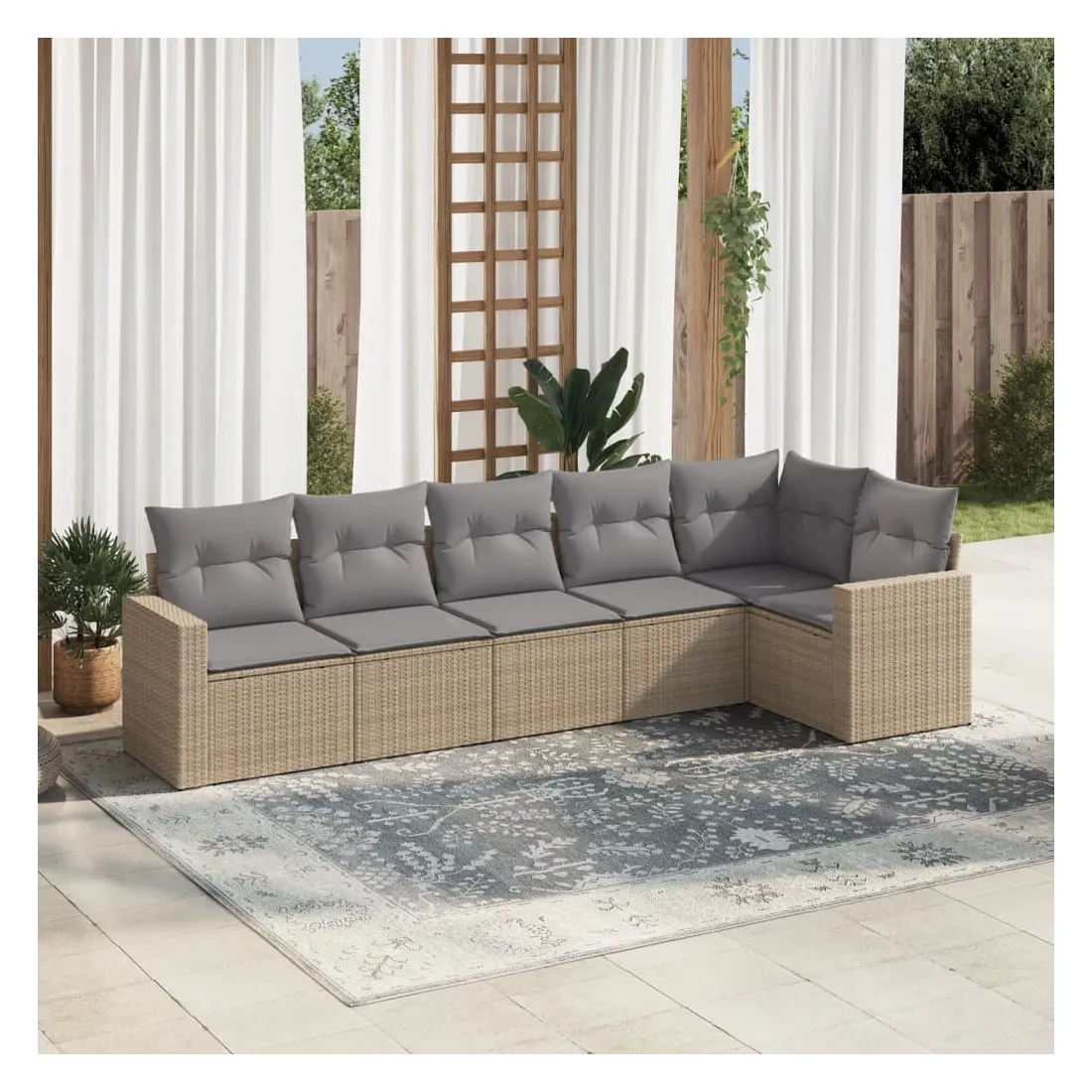Salon de jardin avec coussins 6 pcs beige résine tressée
