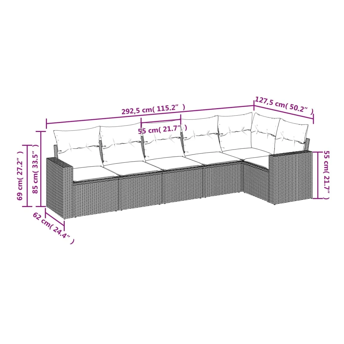 Cet ensemble de canapés de jardin est le complément parfait de votre arrière-cour, terrasse ou patio, offrant un espace confortable et accueillant pour discuter avec la famille et les amis ou simplement se détendre et profiter de l'extérieur. Matériau durable : la résine tressée, également connue sous le nom de poly rotin, est un matériau synthétique solide et nécessitant peu d'entretien qui ressemble au rotin naturel. Il est léger, facile à nettoyer et couramment utilisé pour les meubles d'extérieur en raison de sa durabilité et de ses propriétés de résistance aux intempéries.Fonction de rangement avec sac résistant à l'eau : chaque siège de jardin dispose d'un espace de rangement sous l'assise, complété par un sac résistant à l'eau pour ranger les coussins, les jouets et d'autres objets. Les sacs intérieurs sont dotés d'un couvercle et peuvent être solidement fixés aux sièges à l'aide de bandes auto-agrippantes pour plus de stabilité.Expérience d'assise confortable : ce mobilier d'extérieur, doté de coussins épais, offre une expérience d'assise confortable.Housse amovible et lavable : ces coussins de siège sont dotés de housses amovibles pour un lavage et un entretien faciles.Conception modulaire : cet ensemble de meubles d'extérieur a une conception modulaire, ce qui le rend complètement flexible et facile à déplacer, afin que vous puissiez créer un agencement de meubles d'extérieur personnalisé. Bon à savoir :Pour que vos meubles d'extérieur restent beaux, nous vous recommandons de les protéger avec une housse imperméable.