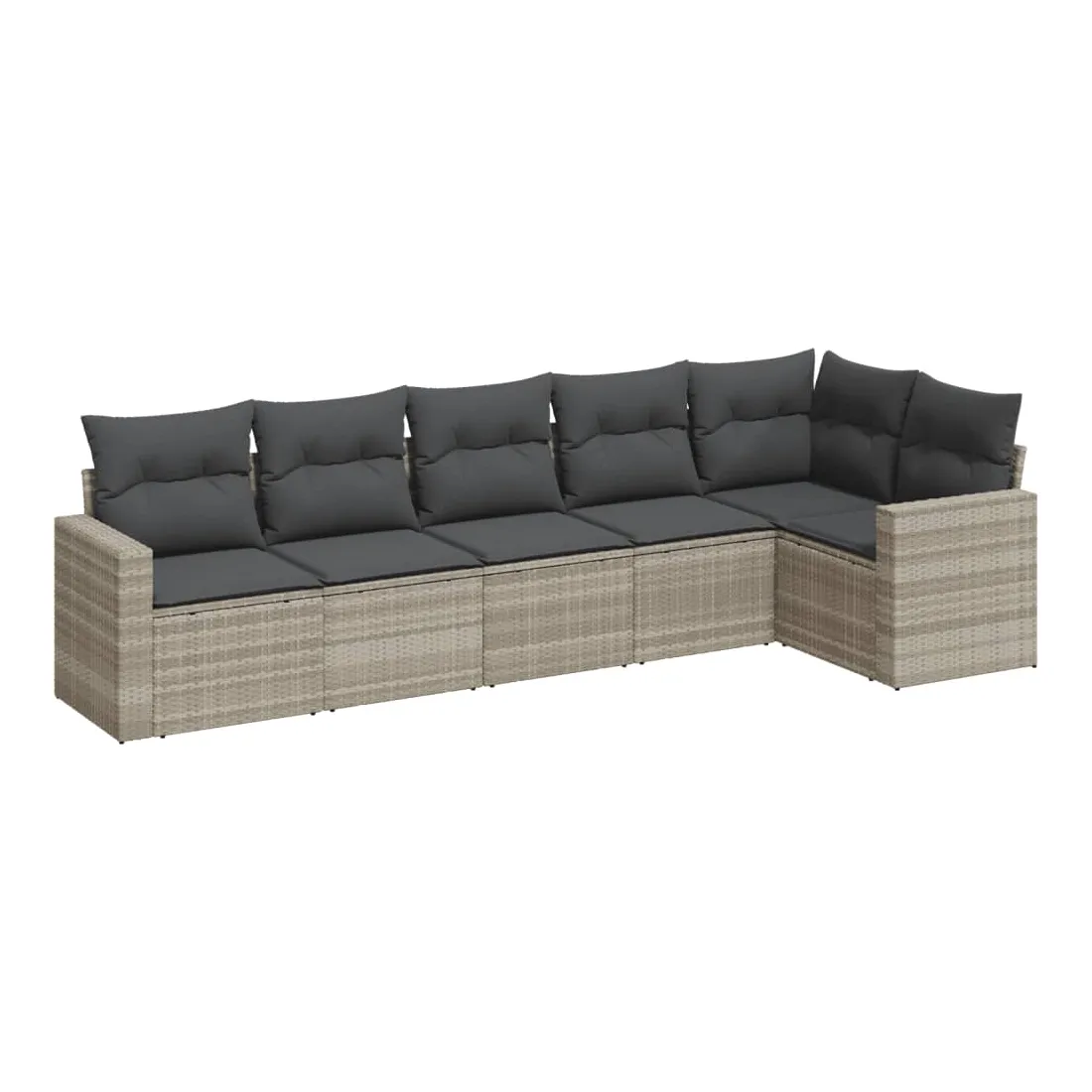 Salon de jardin 6 pcs avec coussins gris clair résine tressée