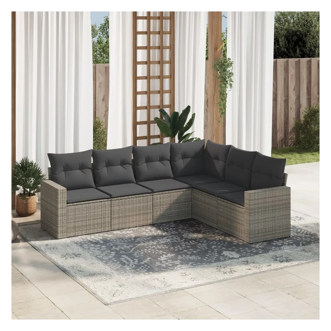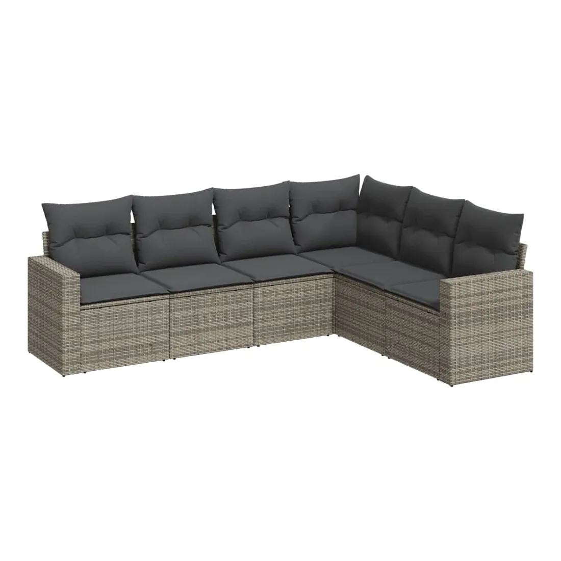 Salon de jardin 6 pcs avec coussins gris résine tressée