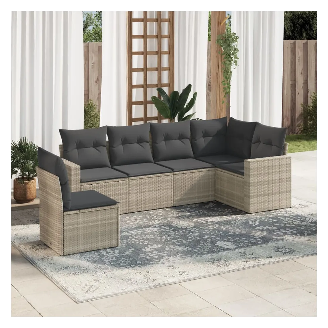 Salon de jardin 6 pcs avec coussins gris clair résine tressée