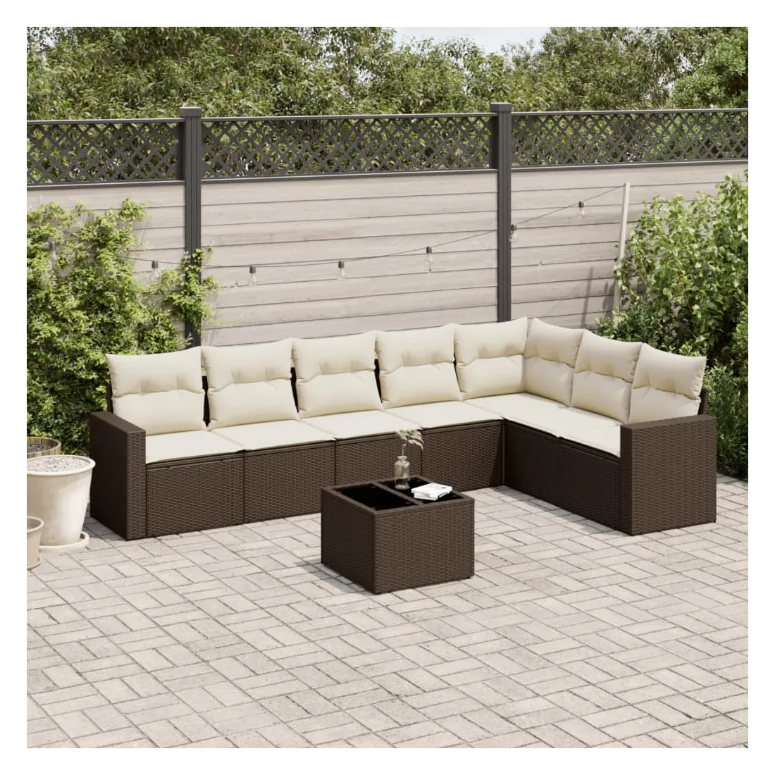 Cet ensemble de canapés de jardin est le complément parfait de votre arrière-cour, terrasse ou patio, offrant un espace confortable et accueillant pour discuter avec la famille et les amis ou simplement se détendre et profiter de l'extérieur. Matériau durable : la résine tressée, également connue sous le nom de poly rotin, est un matériau synthétique solide et nécessitant peu d'entretien qui ressemble au rotin naturel. Il est léger, facile à nettoyer et couramment utilisé pour les meubles d'extérieur en raison de sa durabilité et de ses propriétés de résistance aux intempéries.Fonction de rangement avec sac résistant à l'eau : chaque siège de jardin dispose d'un espace de rangement sous l'assise, complété par un sac résistant à l'eau pour ranger les coussins, les jouets et d'autres objets. Les sacs intérieurs sont dotés d'un couvercle et peuvent être solidement fixés aux sièges à l'aide de bandes auto-agrippantes pour plus de stabilité.Dessus en verre : le dessus de la table d'extérieur est fabriqué en verre trempé solide et durable, ce qui le rend facile à nettoyer avec un chiffon humide et ajoute une touche d'élégance à votre espace extérieur.Housse amovible et lavable : ces coussins de siège sont dotés de housses amovibles pour un lavage et un entretien faciles.Conception modulaire : cet ensemble de meubles d'extérieur a une conception modulaire, ce qui le rend complètement flexible et facile à déplacer, afin que vous puissiez créer un agencement de meubles d'extérieur personnalisé. Bon à savoir :Pour que vos meubles d'extérieur restent beaux, nous vous recommandons de les protéger avec une housse imperméable.