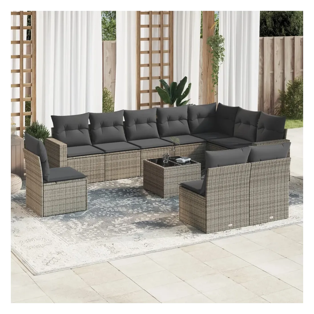 Cet ensemble de canapés de jardin est le complément parfait de votre arrière-cour, terrasse ou patio, offrant un espace confortable et accueillant pour discuter avec la famille et les amis ou simplement se détendre et profiter de l'extérieur. Matériau durable : la résine tressée, également connue sous le nom de poly rotin, est un matériau synthétique solide et nécessitant peu d'entretien qui ressemble au rotin naturel. Il est léger, facile à nettoyer et couramment utilisé pour les meubles d'extérieur en raison de sa durabilité et de ses propriétés de résistance aux intempéries.Fonction de rangement avec sac résistant à l'eau : chaque siège de jardin dispose d'un espace de rangement sous l'assise, complété par un sac résistant à l'eau pour ranger les coussins, les jouets et d'autres objets. Les sacs intérieurs sont dotés d'un couvercle et peuvent être solidement fixés aux sièges à l'aide de bandes auto-agrippantes pour plus de stabilité.Dessus en verre : le dessus de la table d'extérieur est fabriqué en verre trempé solide et durable, ce qui le rend facile à nettoyer avec un chiffon humide et ajoute une touche d'élégance à votre espace extérieur.Housse amovible et lavable : ces coussins de siège sont dotés de housses amovibles pour un lavage et un entretien faciles.Conception modulaire : cet ensemble de meubles d'extérieur a une conception modulaire, ce qui le rend complètement flexible et facile à déplacer, afin que vous puissiez créer un agencement de meubles d'extérieur personnalisé. Bon à savoir :Pour que vos meubles d'extérieur restent beaux, nous vous recommandons de les protéger avec une housse imperméable.