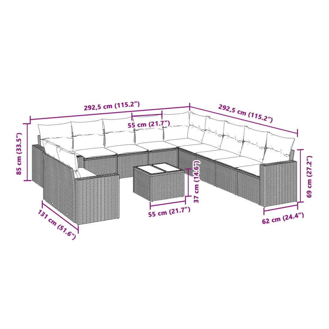 - Dimensions : 55 x 55 x 37 cm (L x l x H)