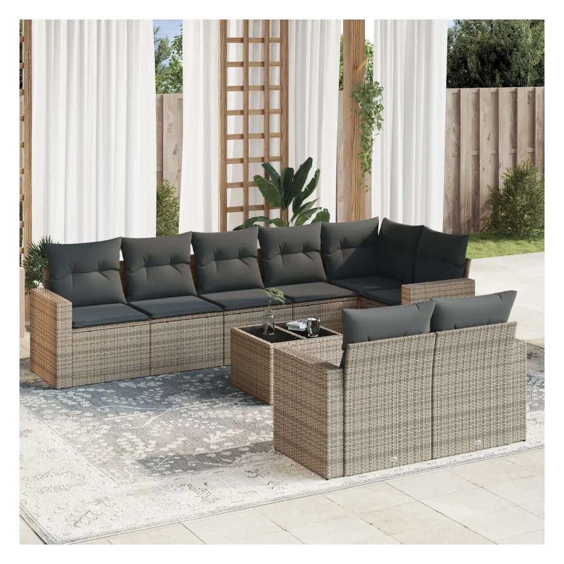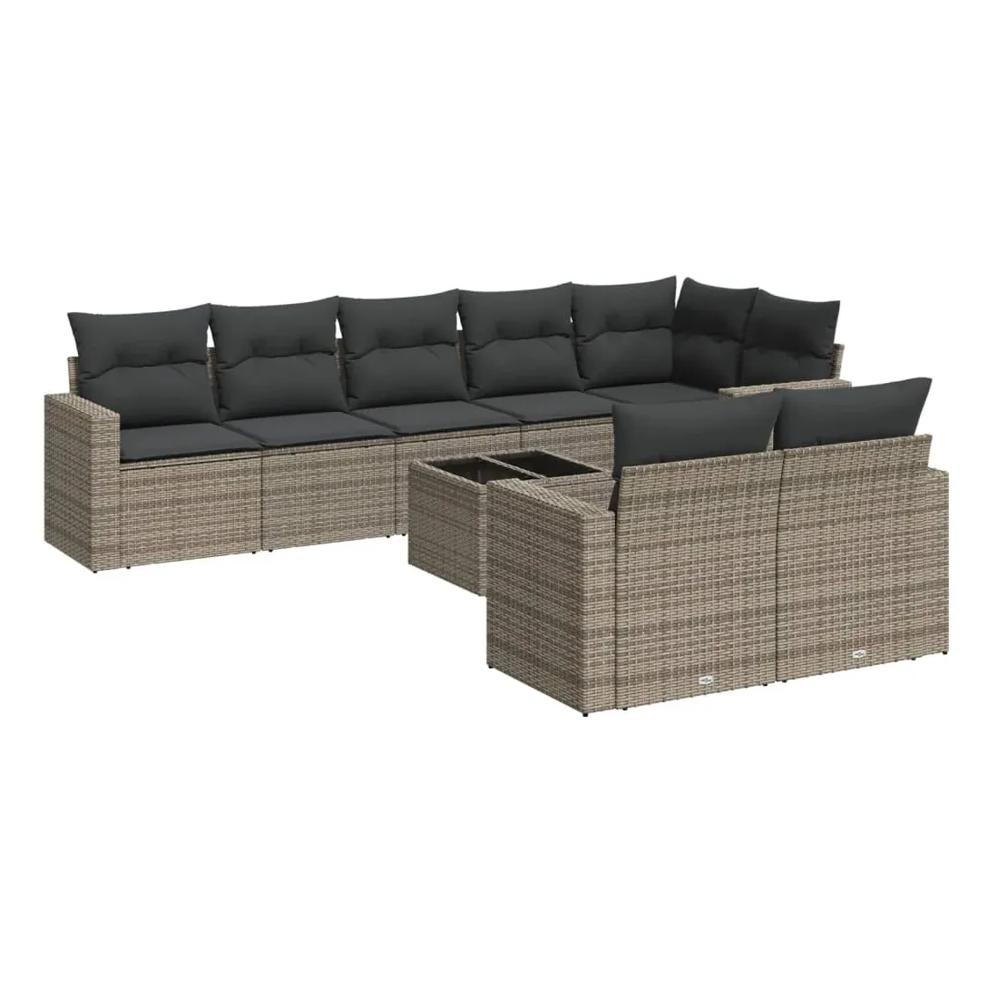 Salon de jardin 9 pcs avec coussins gris résine tressée