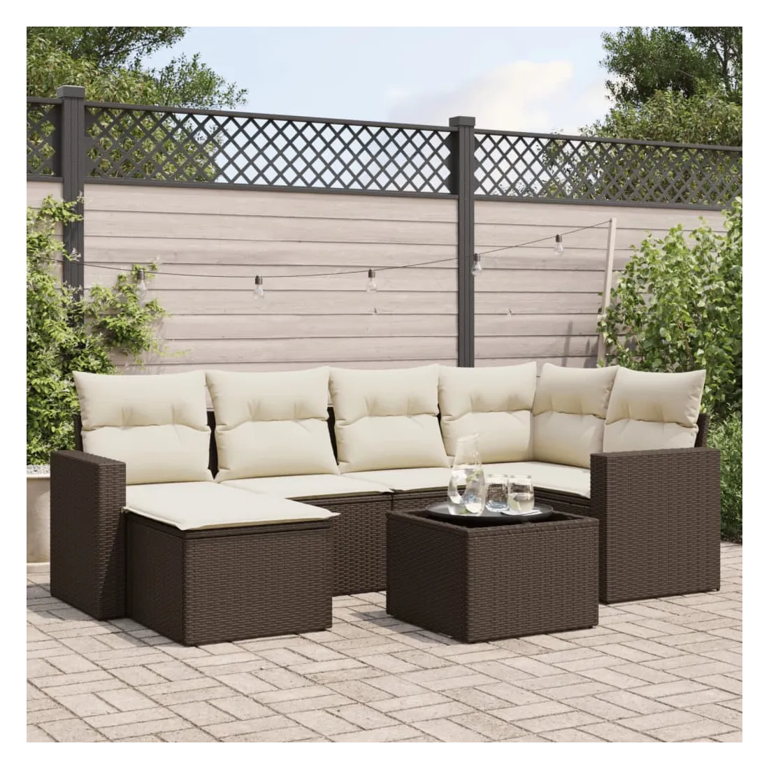 Cet ensemble de canapés de jardin est le complément parfait de votre arrière-cour, terrasse ou patio, offrant un espace confortable et accueillant pour discuter avec la famille et les amis ou simplement se détendre et profiter de l'extérieur. Matériau durable : la résine tressée, également connue sous le nom de poly rotin, est un matériau synthétique solide et nécessitant peu d'entretien qui ressemble au rotin naturel. Il est léger, facile à nettoyer et couramment utilisé pour les meubles d'extérieur en raison de sa durabilité et de ses propriétés de résistance aux intempéries.Fonction de rangement avec sac résistant à l'eau : chaque siège de jardin dispose d'un espace de rangement sous l'assise, complété par un sac résistant à l'eau pour ranger les coussins, les jouets et d'autres objets. Les sacs intérieurs sont dotés d'un couvercle et peuvent être solidement fixés aux sièges à l'aide de bandes auto-agrippantes pour plus de stabilité.Dessus en verre : le dessus de la table d'extérieur est fabriqué en verre trempé solide et durable, ce qui le rend facile à nettoyer avec un chiffon humide et ajoute une touche d'élégance à votre espace extérieur.Housse amovible et lavable : ces coussins de siège sont dotés de housses amovibles pour un lavage et un entretien faciles.Conception modulaire : cet ensemble de meubles d'extérieur a une conception modulaire, ce qui le rend complètement flexible et facile à déplacer, afin que vous puissiez créer un agencement de meubles d'extérieur personnalisé. Bon à savoir :Pour que vos meubles d'extérieur restent beaux, nous vous recommandons de les protéger avec une housse imperméable.