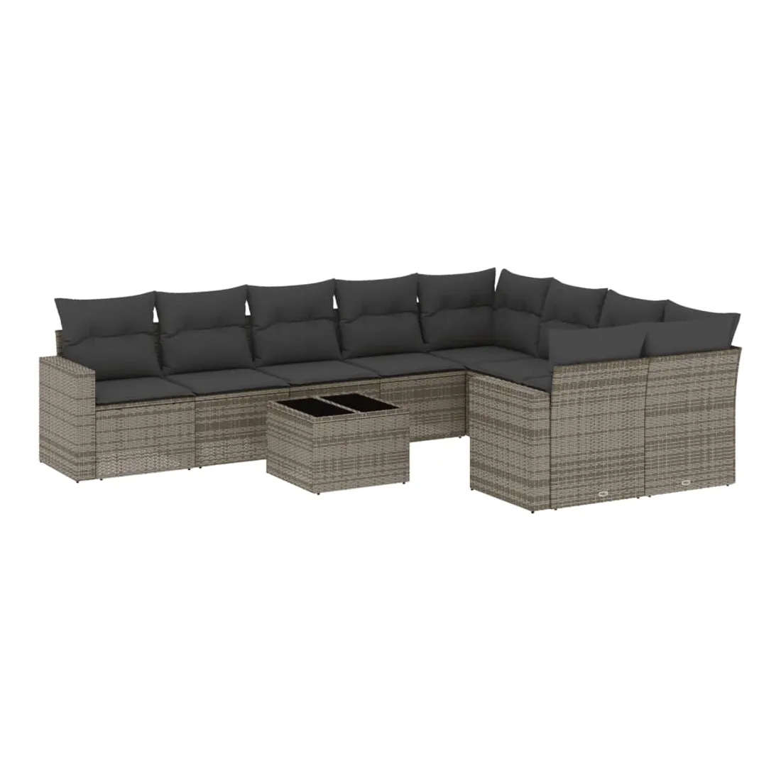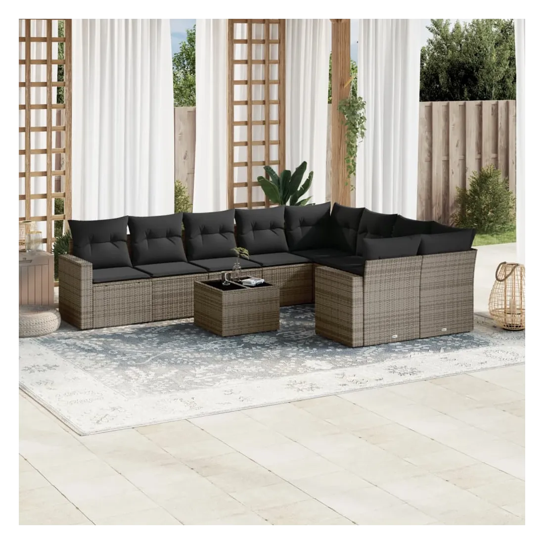 Salon de jardin avec coussins 10 pcs gris résine tressée