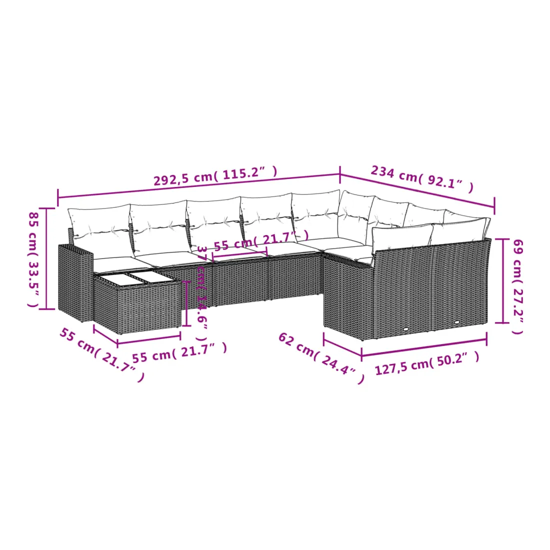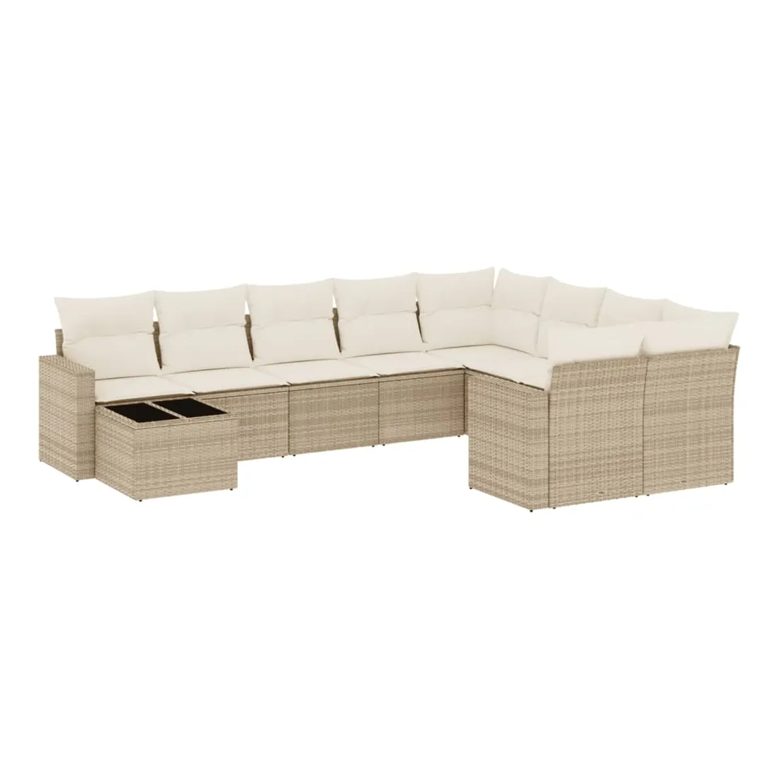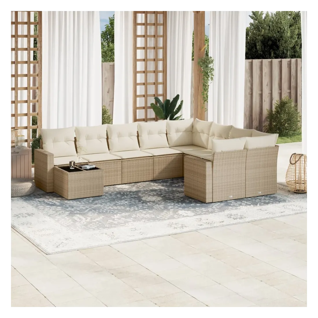 Salon de jardin avec coussins 10 pcs beige résine tressée