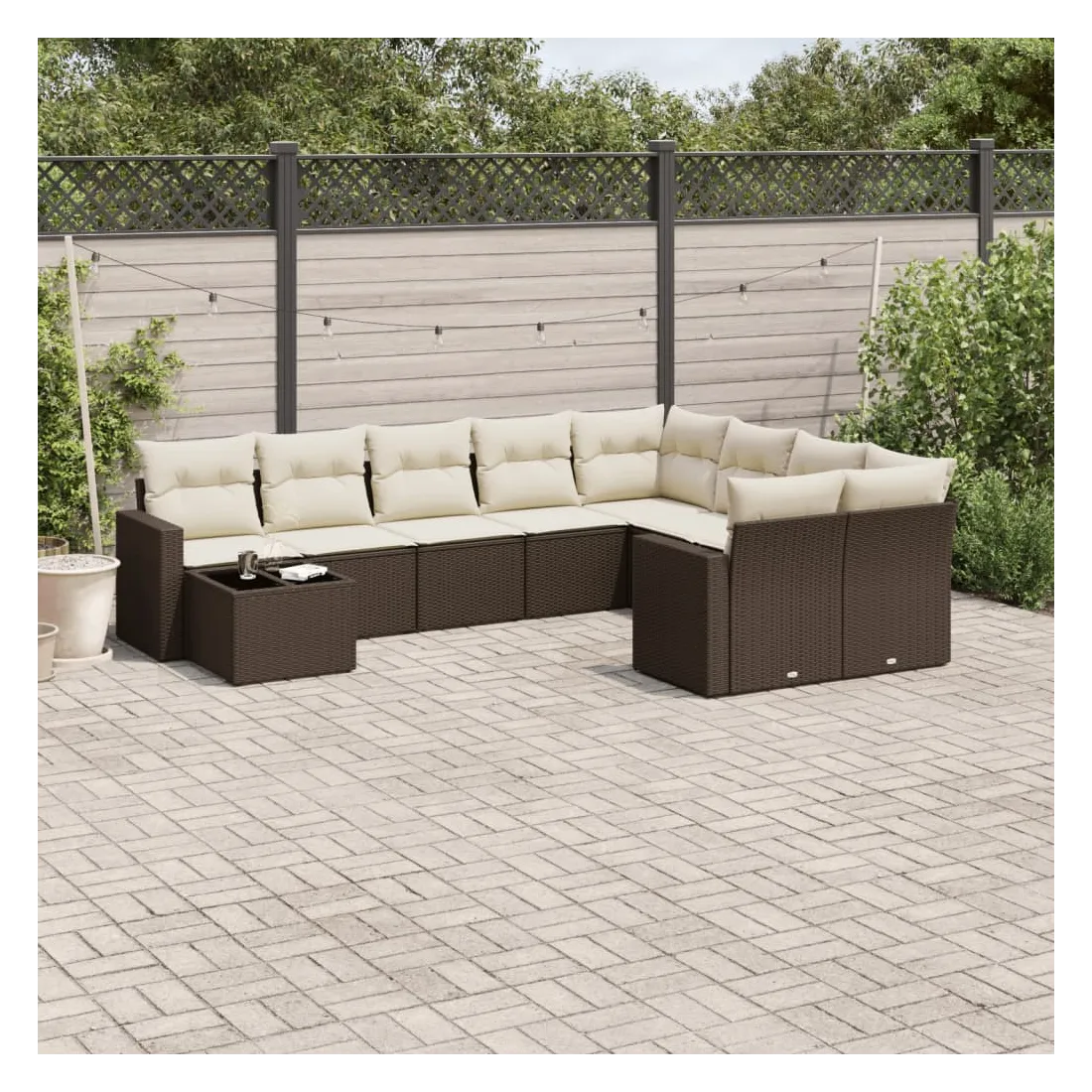 Salon de jardin 10 pcs avec coussins marron résine tressée