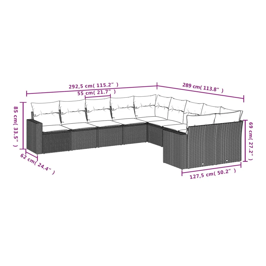 Cet ensemble de canapés de jardin est le complément parfait de votre arrière-cour, terrasse ou patio, offrant un espace confortable et accueillant pour discuter avec la famille et les amis ou simplement se détendre et profiter de l'extérieur. Matériau durable : la résine tressée, également connue sous le nom de poly rotin, est un matériau synthétique solide et nécessitant peu d'entretien qui ressemble au rotin naturel. Il est léger, facile à nettoyer et couramment utilisé pour les meubles d'extérieur en raison de sa durabilité et de ses propriétés de résistance aux intempéries.Fonction de rangement avec sac résistant à l'eau : chaque siège de jardin dispose d'un espace de rangement sous l'assise, complété par un sac résistant à l'eau pour ranger les coussins, les jouets et d'autres objets. Les sacs intérieurs sont dotés d'un couvercle et peuvent être solidement fixés aux sièges à l'aide de bandes auto-agrippantes pour plus de stabilité.Housse amovible et lavable : ces coussins de siège sont dotés de housses amovibles pour un lavage et un entretien faciles.Conception modulaire : cet ensemble de meubles d'extérieur a une conception modulaire, ce qui le rend complètement flexible et facile à déplacer, afin que vous puissiez créer un agencement de meubles d'extérieur personnalisé. Bon à savoir :Pour que vos meubles d'extérieur restent beaux, nous vous recommandons de les protéger avec une housse imperméable.