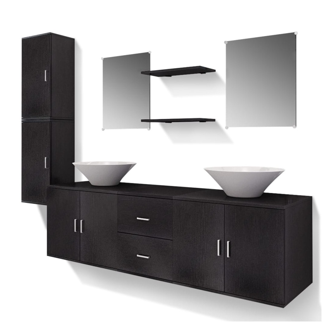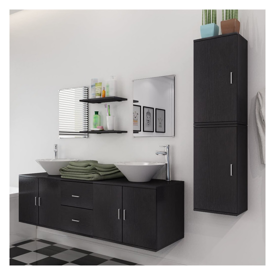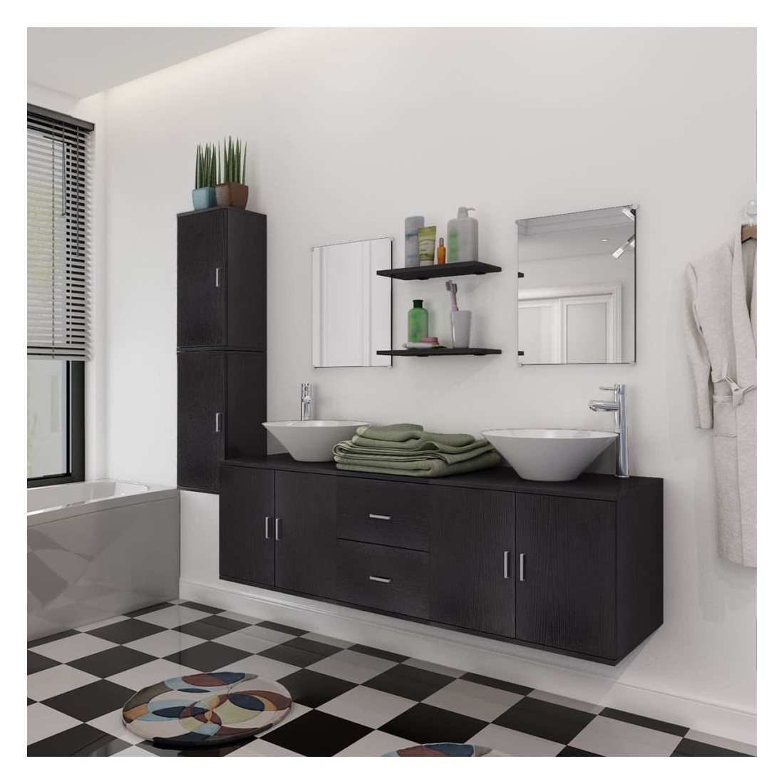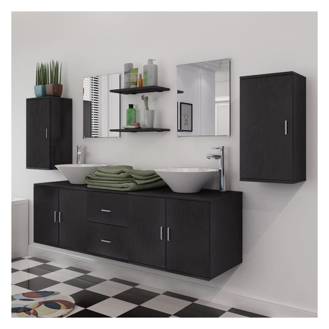 Mobilier de salle de bain avec lavabo 9 pcs Noir