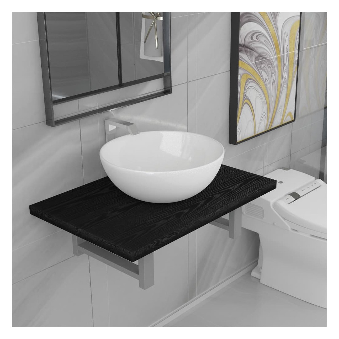 Meuble de salle de bain en deux pièces Céramique Noir
