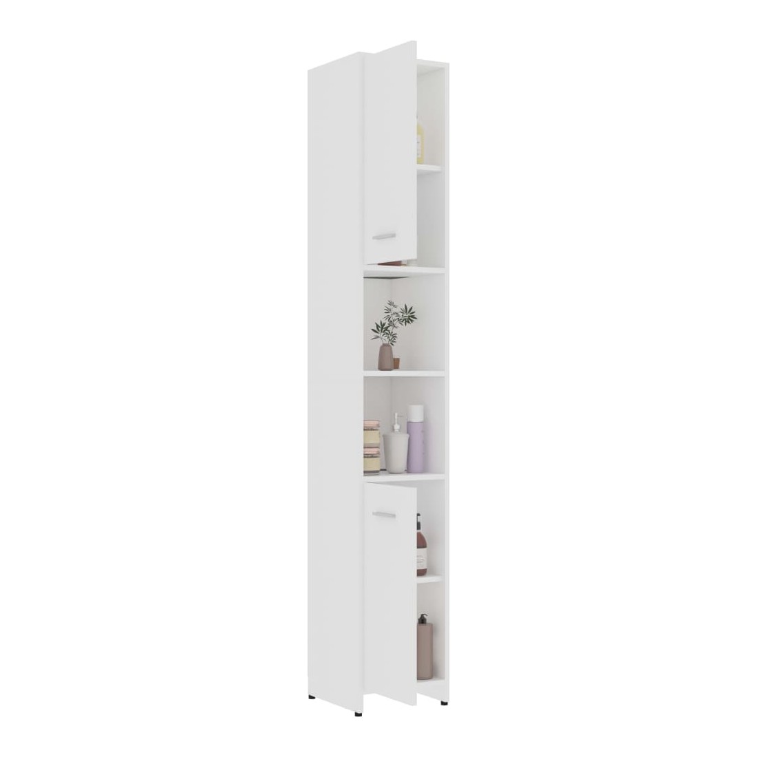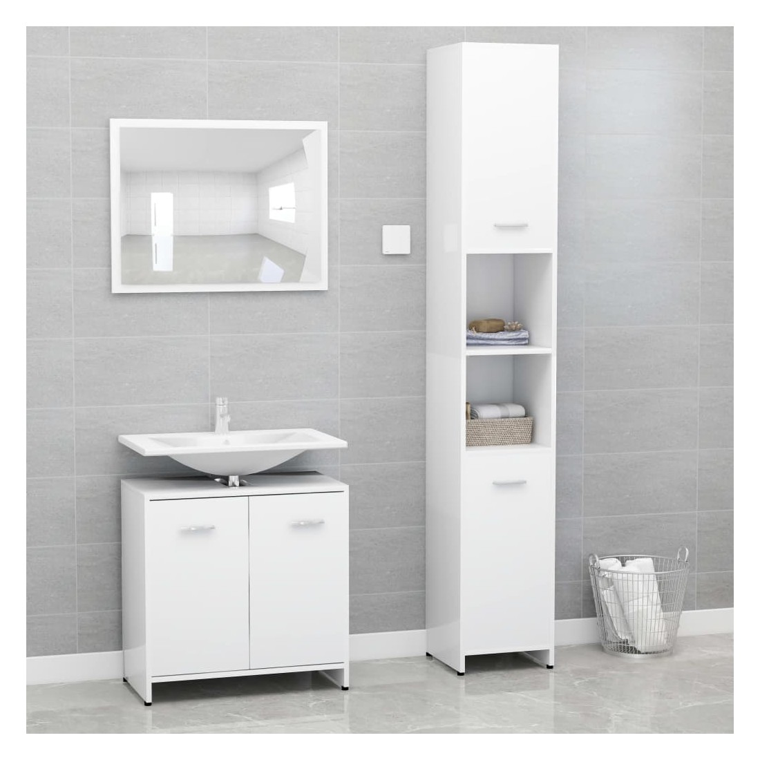 Cet élégant ensemble de meubles de salle de bain, avec 1 armoire haute, 1 armoire sous lavabo et 1 miroir, crée un espace de rangement supplémentaire pour votre salle de bain avec un aspect superbe et soigné. Fabriqué en bois d'ingénierie haut de gamme, cet ensemble est durable et stable. L’armoire haute chic dispose de 6 compartiments et de 2 portes, offrant un espace spacieux pour stocker des articles dans votre salle de bain. L’armoire à lavabo a 1 compartiment et 2 portes, offrant amplement d’espace pour stocker vos articles de toilette, produits de beauté et divers types de petits articles. Vous pouvez même organiser des peignes, des cosmétiques, des brosses à dents et du dentifrice dans les étagères à portée de main. Le miroir ajoute une excellente apparence à votre décoration existante. De plus, cet ensemble de salle de bain est facile à nettoyer avec un chiffon humide.