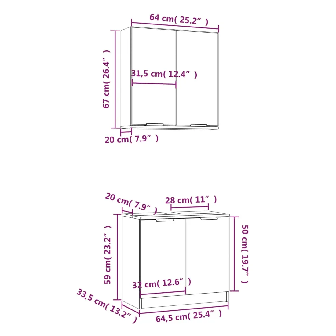 - Dimensions de l'armoire de sol : 64,5 x 33,5 x 59 cm (L x l x H)