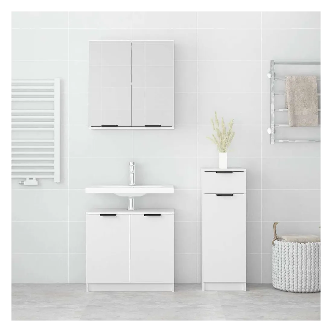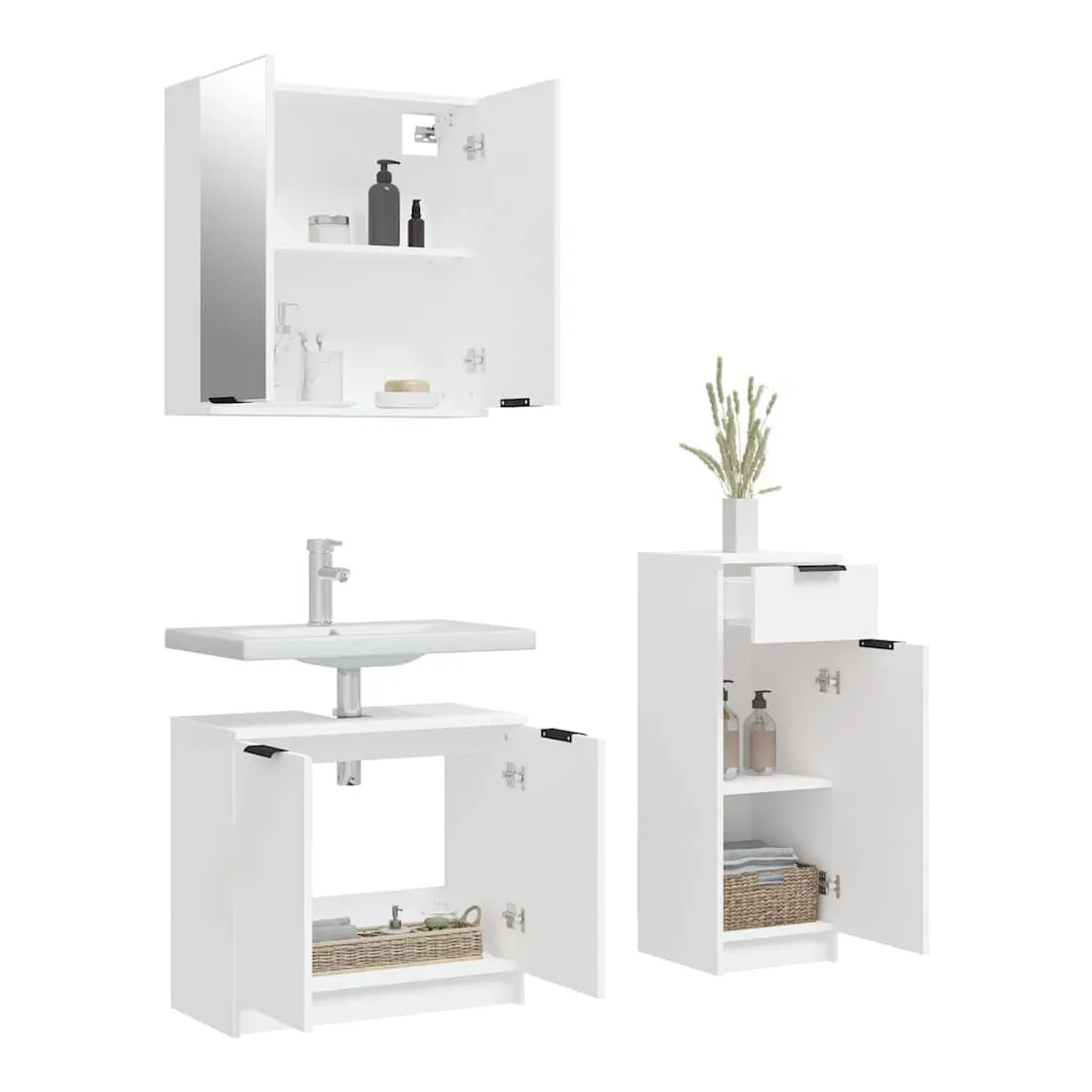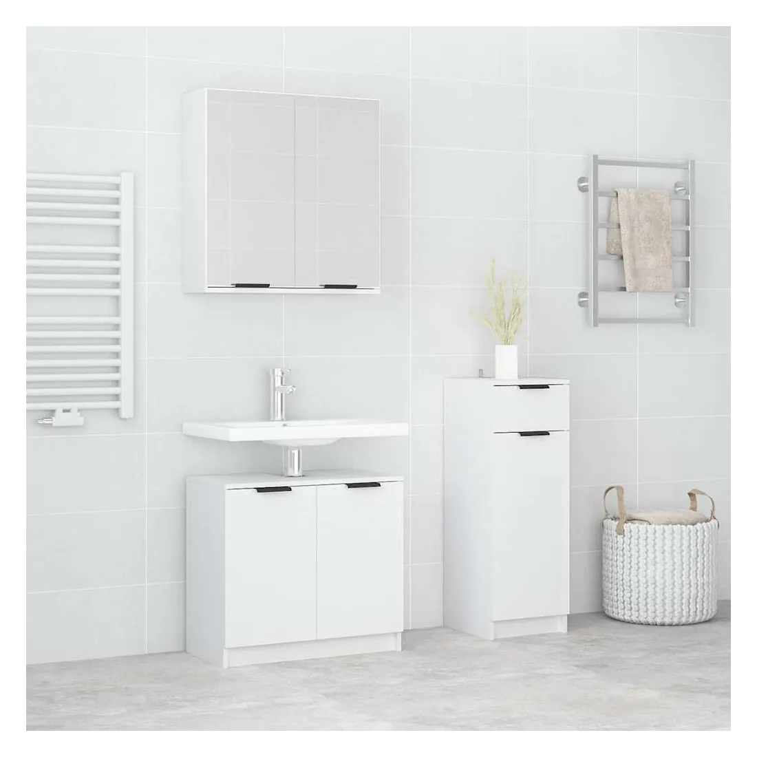 Ensemble d'armoires salle de bain 3 pcs blanc bois d'ingénierie