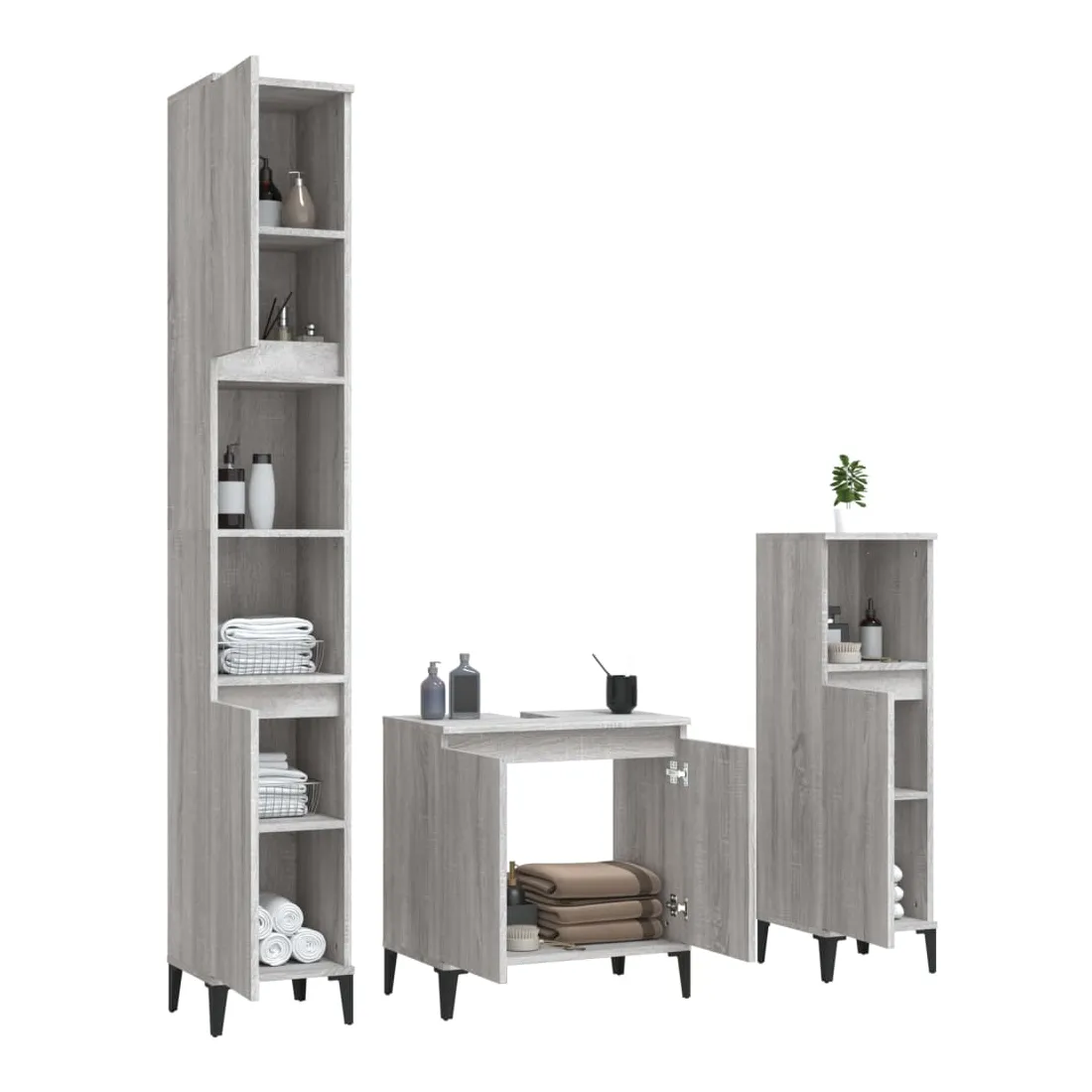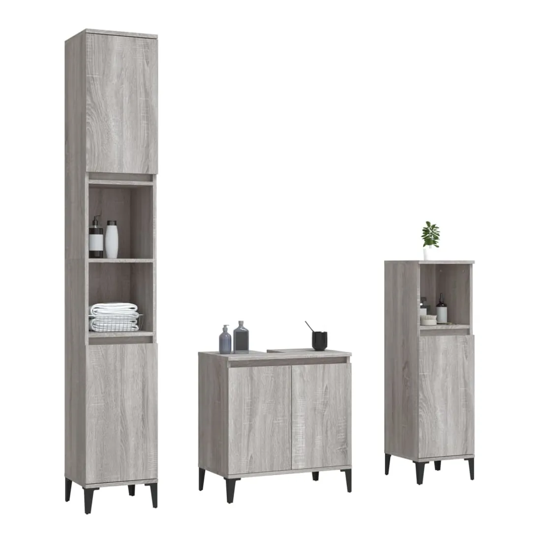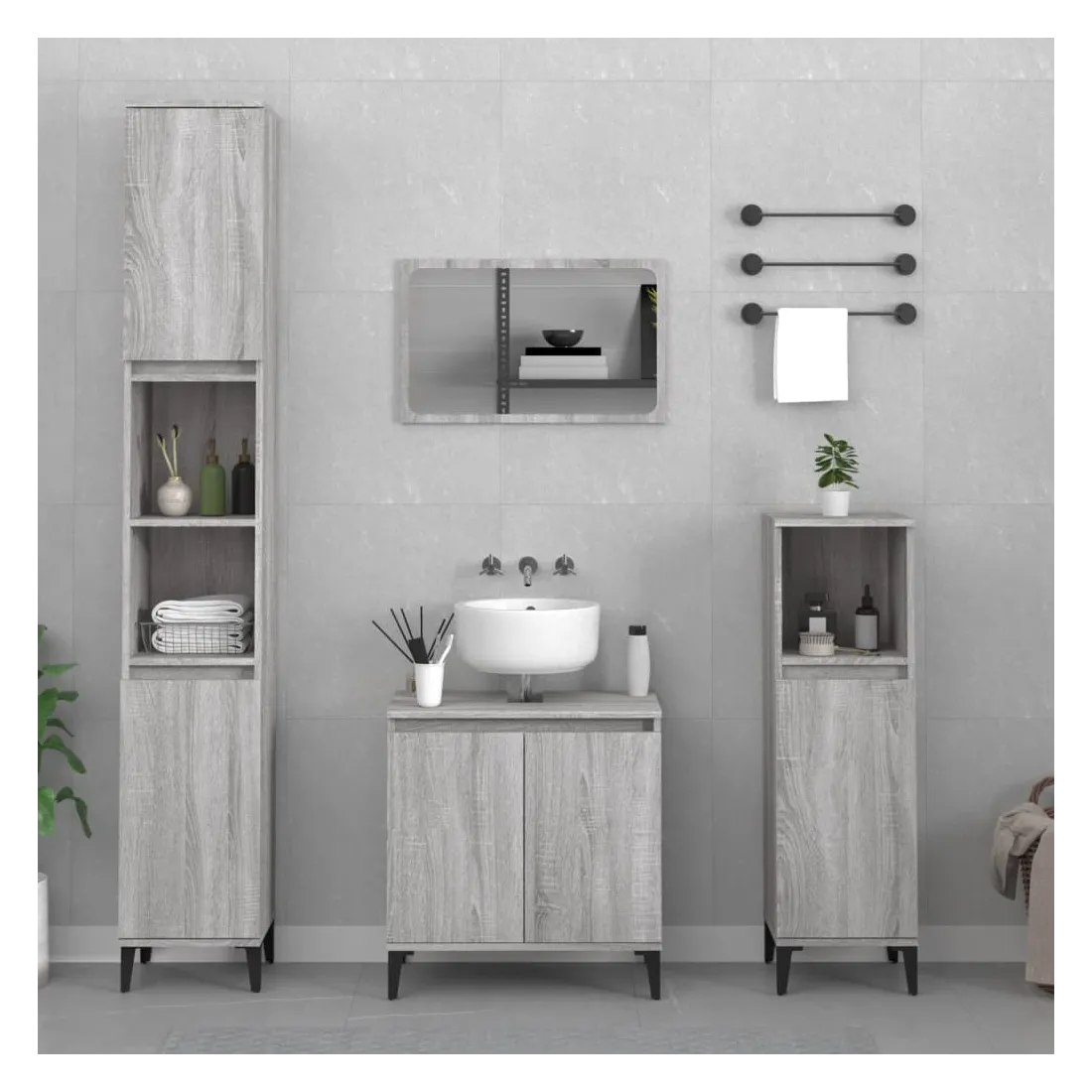 Cet ensemble de meubles de salle de bain, avec un espace de rangement spacieux, est un excellent supplément à votre salle de bain, ce qui lui donne une apparence ordonnée et saisissante ! Matériau durable : le bois d'ingénierie est d'une qualité exceptionnelle avec une surface lisse et présente également résistance, stabilité et résistance à l'humidité.Grand espace de rangement : ces armoires de salle de bain offrent un grand espace de rangement pour garder vos fournitures de salle de bain bien organisées.Pieds en métal : les pieds en métal ajoutent un style moderne et calme à votre intérieur tout en assurant la stabilité.Surface facile à nettoyer : l'ensemble de salle de bain est facile à nettoyer avec un chiffon humide.Design élégant : les lignes épurées et le design élégant se fondent parfaitement dans votre salle de bain. Attention :Pour éviter qu'il ne soit renversé, ce produit doit être utilisé avec le dispositif de fixation au mur fourni. Bon à savoir :Les vis et les chevilles pour l'intérieur du mur ne sont pas incluses. Nous vous conseillons de trouver et d'utiliser des vis et des chevilles adaptées spécifiquement à vos murs. Si vous n'êtes pas sûr, vous pouvez consulter un professionnel. Veuillez lire et suivre chaque étape des instructions.