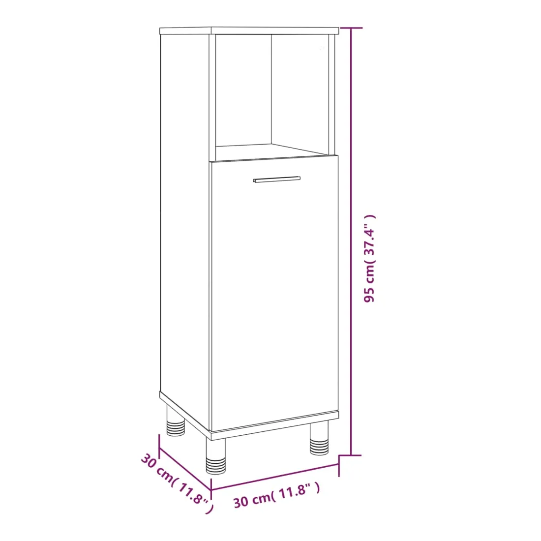 - Dimensions de l'armoire sur pied : 30 x 30 x 95 cm (L x l x H)
