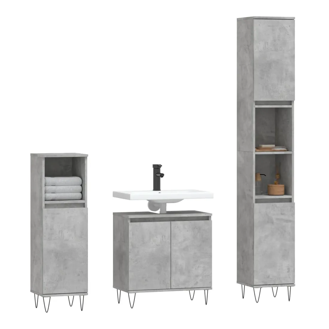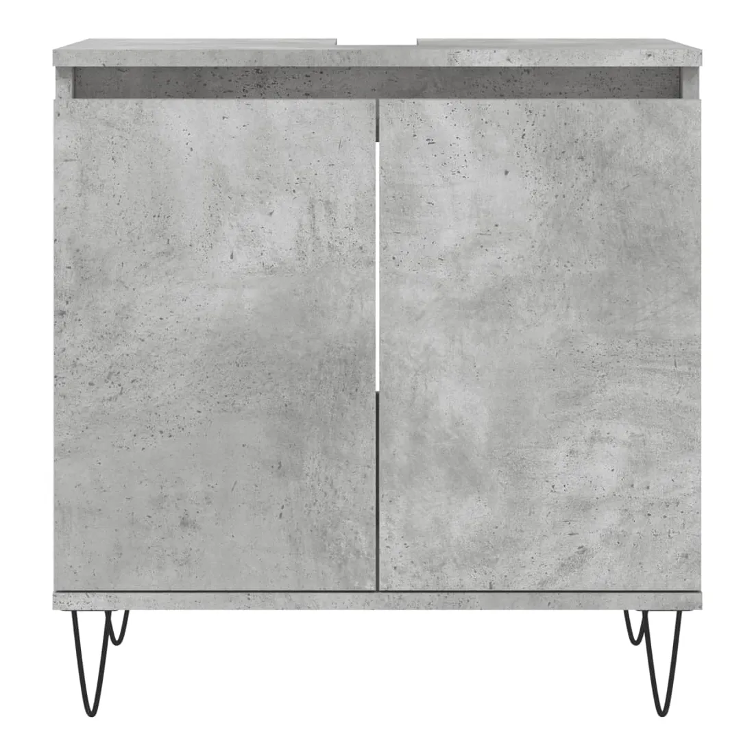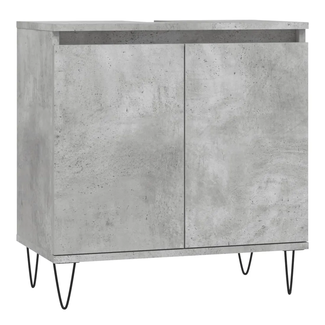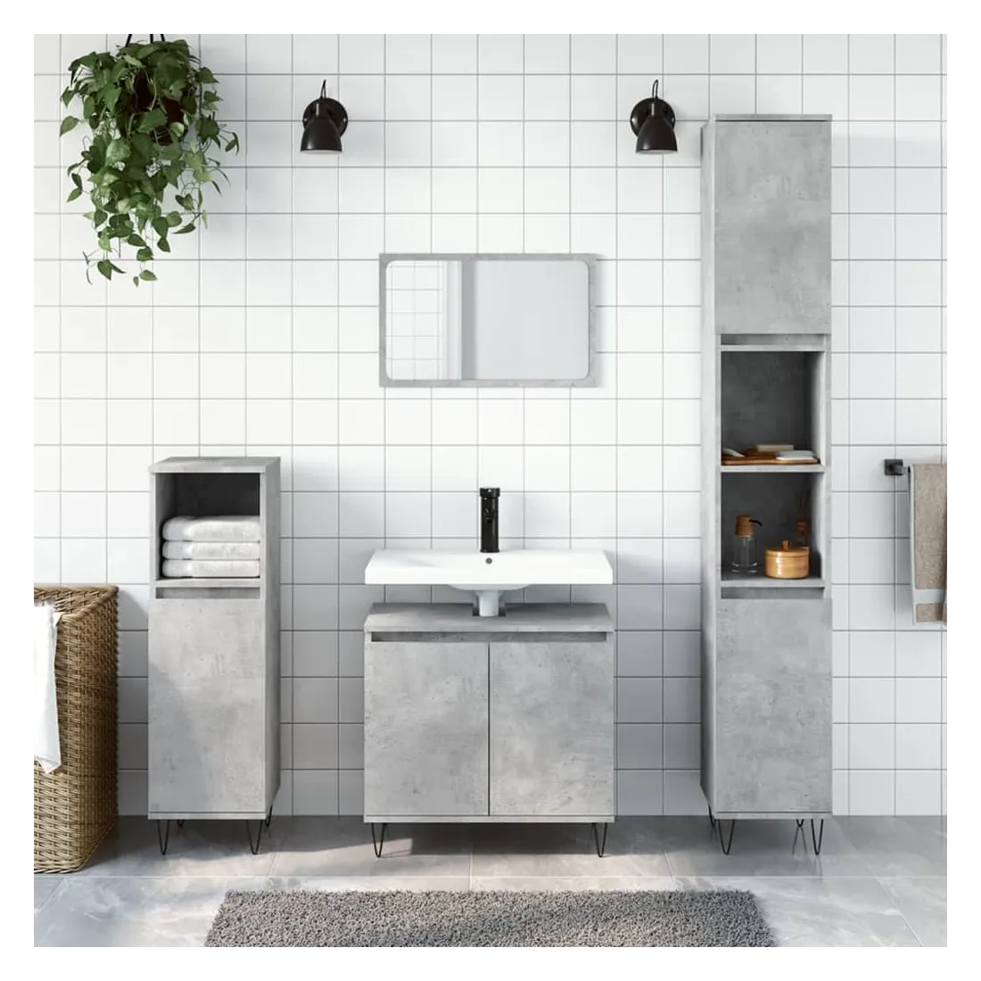 Cet ensemble d'armoires de salle de bain attrayant, avec un grand espace de rangement, présente un design élégant mais pratique. Matériau durable : le bois d'ingénierie est d'une qualité exceptionnelle avec une surface lisse et présente également résistance, stabilité et résistance à l'humidité. Grand espace de rangement : l'espace de rangement facilite l'organisation des articles dans ces meubles de salle de bain. Pieds en métal : les pieds en métal ajoutent un style moderne et calme à votre intérieur tout en assurant la stabilité.Surface facile à nettoyer : l'ensemble de salle de bain est facile à nettoyer avec un chiffon humide. Attention :Pour éviter qu'il ne soit renversé, ce produit doit être utilisé avec le dispositif de fixation au mur fourni. Bon à savoir :Les vis et les chevilles pour l'intérieur du mur ne sont pas incluses. Nous vous conseillons de trouver et d'utiliser des vis et des chevilles adaptées spécifiquement à vos murs. Si vous n'êtes pas sûr, vous pouvez consulter un professionnel. Veuillez lire et suivre chaque étape des instructions.Le lavabo n'est pas inclus dans la livraison.