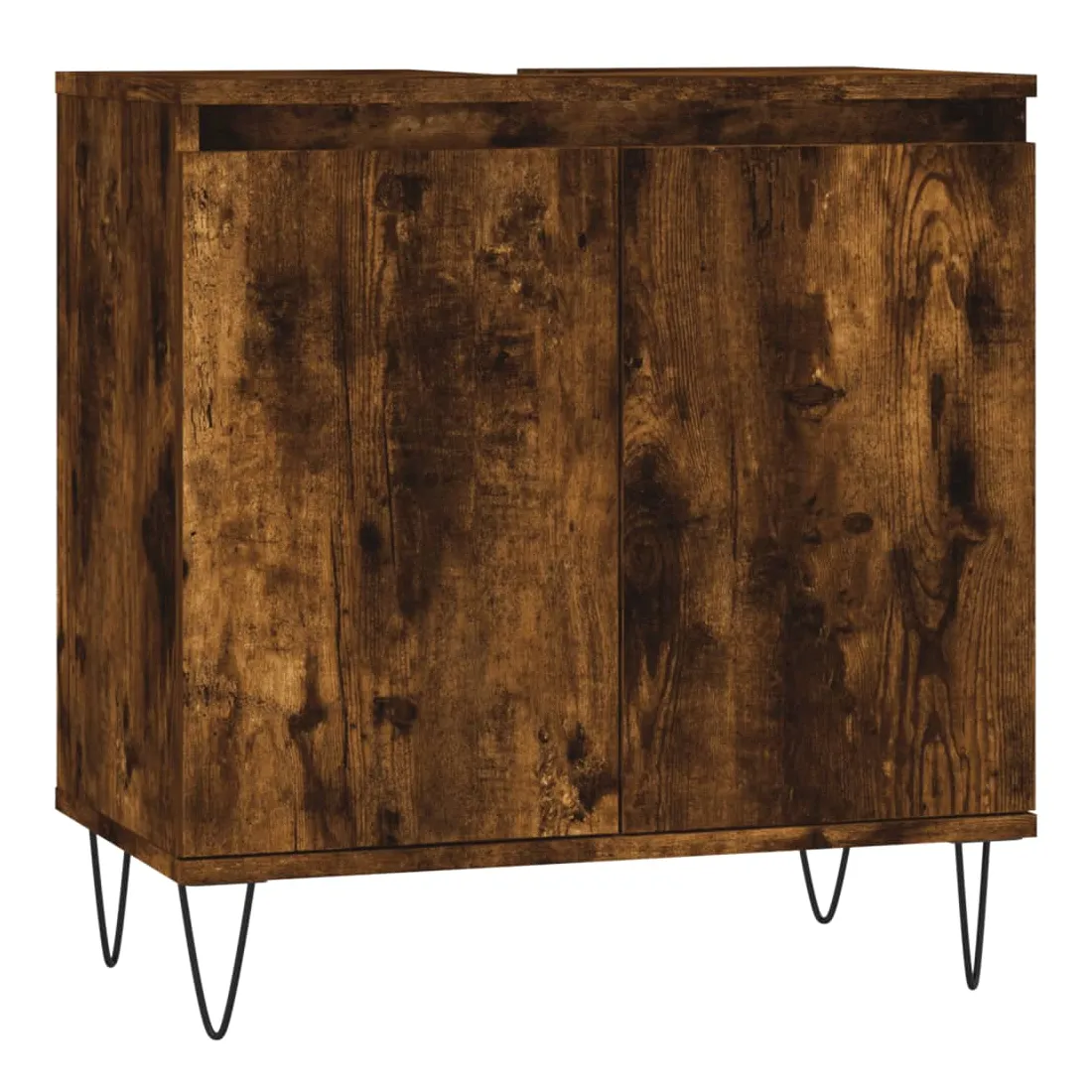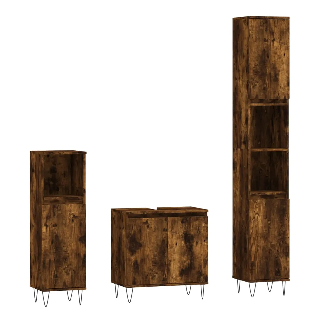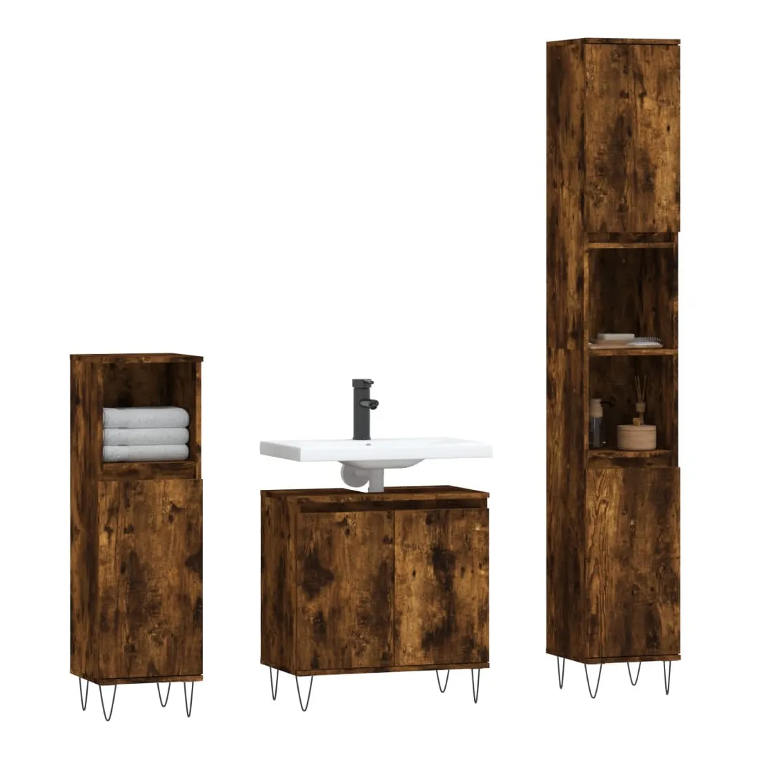 Cet ensemble d'armoires de salle de bain attrayant, avec un grand espace de rangement, présente un design élégant mais pratique. Matériau durable : le bois d'ingénierie est d'une qualité exceptionnelle avec une surface lisse et présente également résistance, stabilité et résistance à l'humidité. Grand espace de rangement : l'espace de rangement facilite l'organisation des articles dans ces meubles de salle de bain. Pieds en métal : les pieds en métal ajoutent un style moderne et calme à votre intérieur tout en assurant la stabilité.Surface facile à nettoyer : l'ensemble de salle de bain est facile à nettoyer avec un chiffon humide. Attention :Pour éviter qu'il ne soit renversé, ce produit doit être utilisé avec le dispositif de fixation au mur fourni. Bon à savoir :Les vis et les chevilles pour l'intérieur du mur ne sont pas incluses. Nous vous conseillons de trouver et d'utiliser des vis et des chevilles adaptées spécifiquement à vos murs. Si vous n'êtes pas sûr, vous pouvez consulter un professionnel. Veuillez lire et suivre chaque étape des instructions.Le lavabo n'est pas inclus dans la livraison.