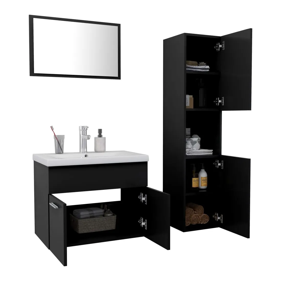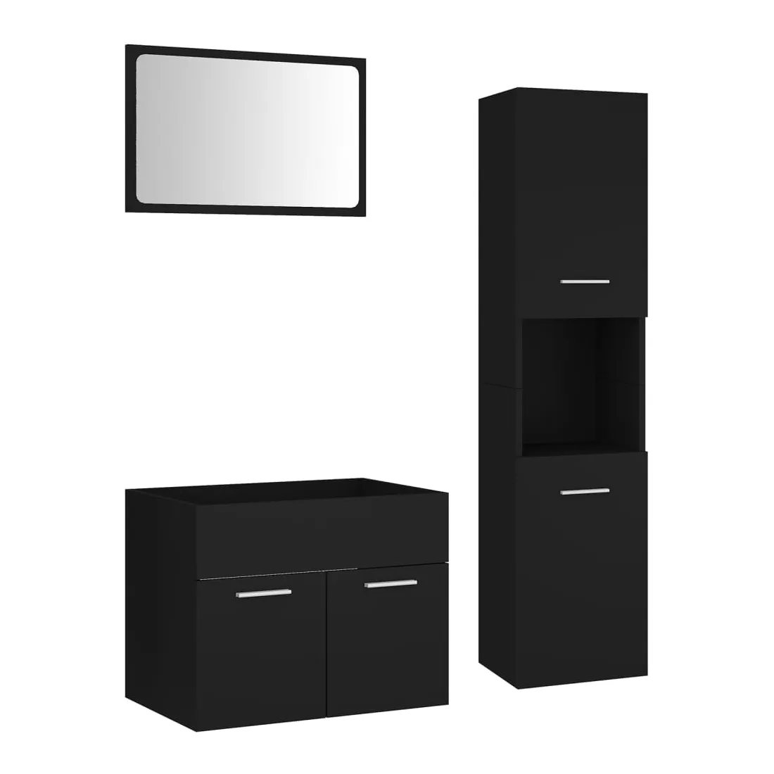 vidaXLAvec cet ensemble de meubles de salle de bain, vous pouvez créer un espace de rangement supplémentaire pour votre salle de bain avec un aspect propre et ordonné. Les lignes épurées et le design élégant se fondent parfaitement dans votre salle de bain. L'ensemble de meubles se compose d'une armoire d'évier, d'une armoire haute et d'un miroir. L'armoire d'évier chic a 1 compartiment et le dessus de celle-ci est idéal pour placer l'évier. L'armoire haute comporte un total de 5 compartiments et 2 portes, offrant amplement d'espace pour ranger des objets dans votre salle de bain. Le miroir ajoute également une excellente apparence à votre décoration intérieure. De plus, cet ensemble de salle de bain est facile à nettoyer avec un chiffon humide. Remarque : l'évier, le robinet et le drain ne sont pas inclus dans la livraison.