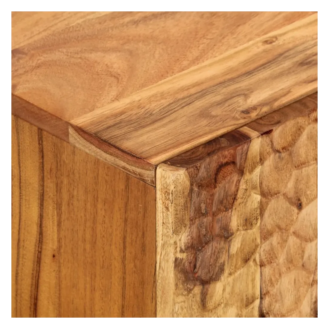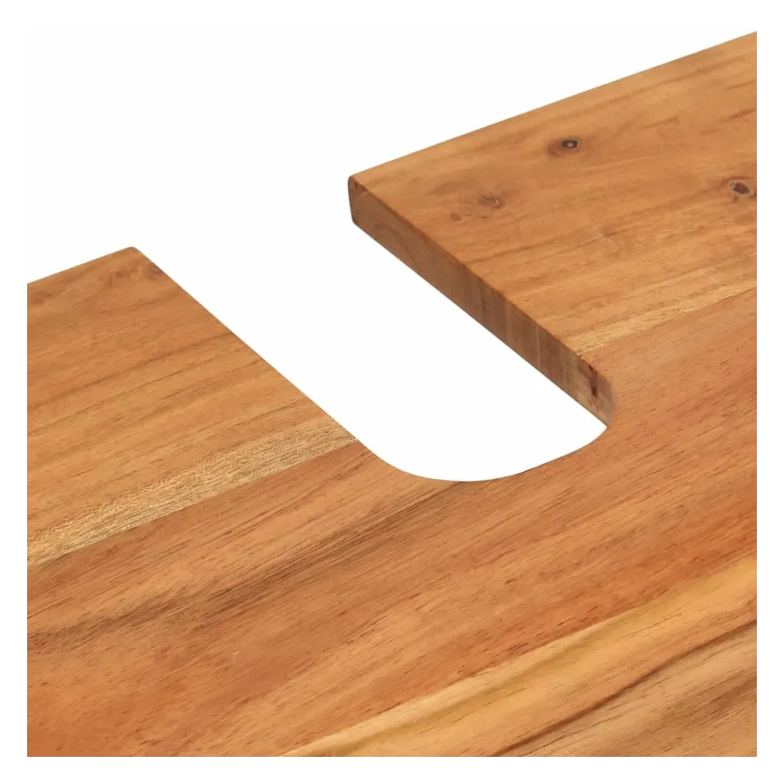 - Matériau : bois d'acacia massif avec finition naturelle, bois d'ingénierie, fer, verre
