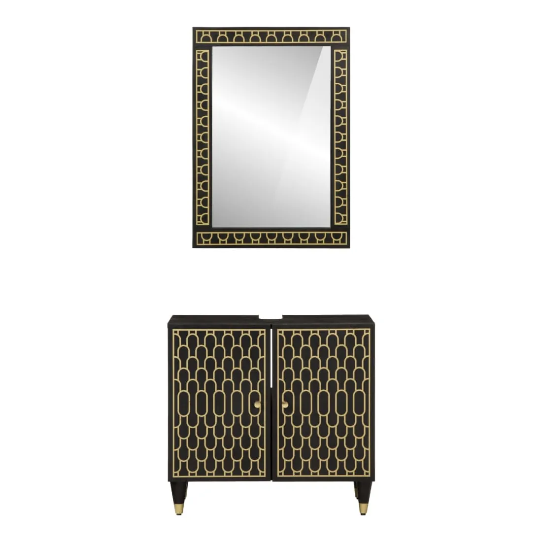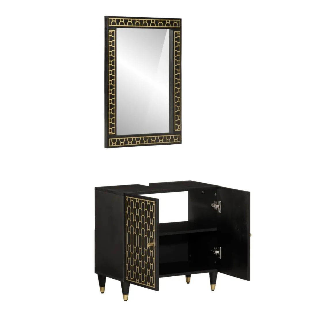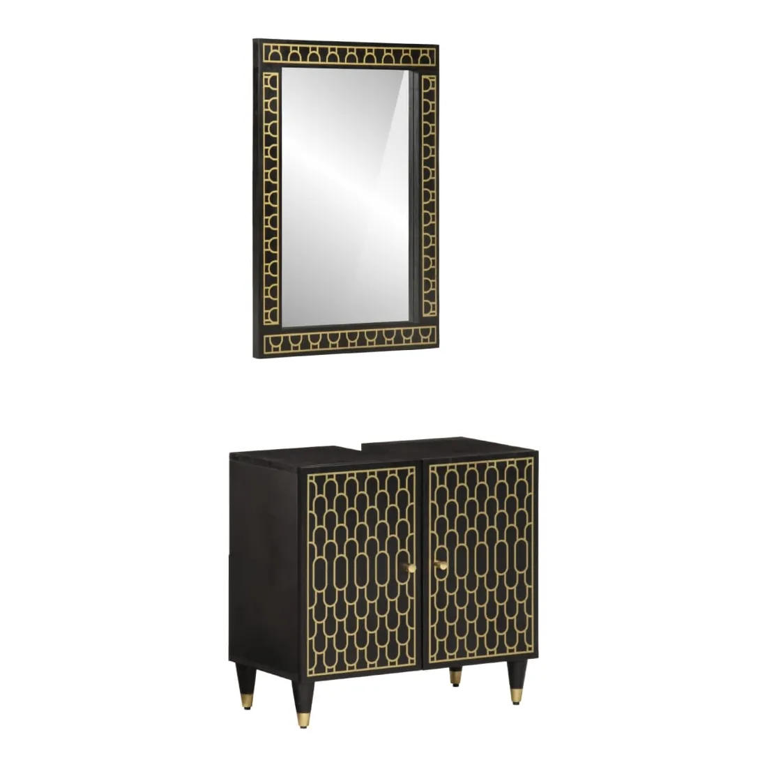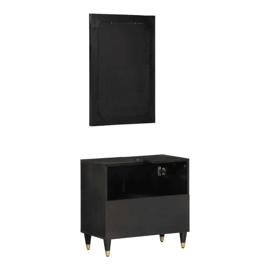 Cet ensemble de meubles de salle de bain pratique, avec un espace de rangement spacieux, est un excellent supplément à votre salle de bain, ce qui lui donne une apparence ordonnée et saisissante ! Bois de manguier massif : le bois de manguier massif est un bois dur tropical solide qui fait des meubles robustes. Ses beaux grains de bois rendent chaque meuble légèrement différent l'un de l'autre. Grand espace de rangement : les meubles de salle de bain en bois offrent diverses options de rangement et un espace spacieux pour ranger des objets dans votre salle de bain. Design peu encombrant : le miroir de courtoisie peut être facilement fixé au mur pour économiser de l'espace au sol. Le haut de l'armoire de toilette est idéal pour placer l'évier, ce qui permet d'utiliser pleinement l'espace libre sous l'évier. Image claire : la face en verre du miroir offre une réflexion fine et non déformée. Il convient donc pour se maquiller, se raser ou vérifier son costume avant de sortir. Attention :Pour éviter qu'il ne bascule, ce produit doit être utilisé avec le dispositif de fixation murale fourni. Bon à savoir :Chaque article est unique, avec des variations de couleurs et de grains. La livraison est aléatoire, ce qui garantit l'exclusivité et l'individualité de votre produit.
