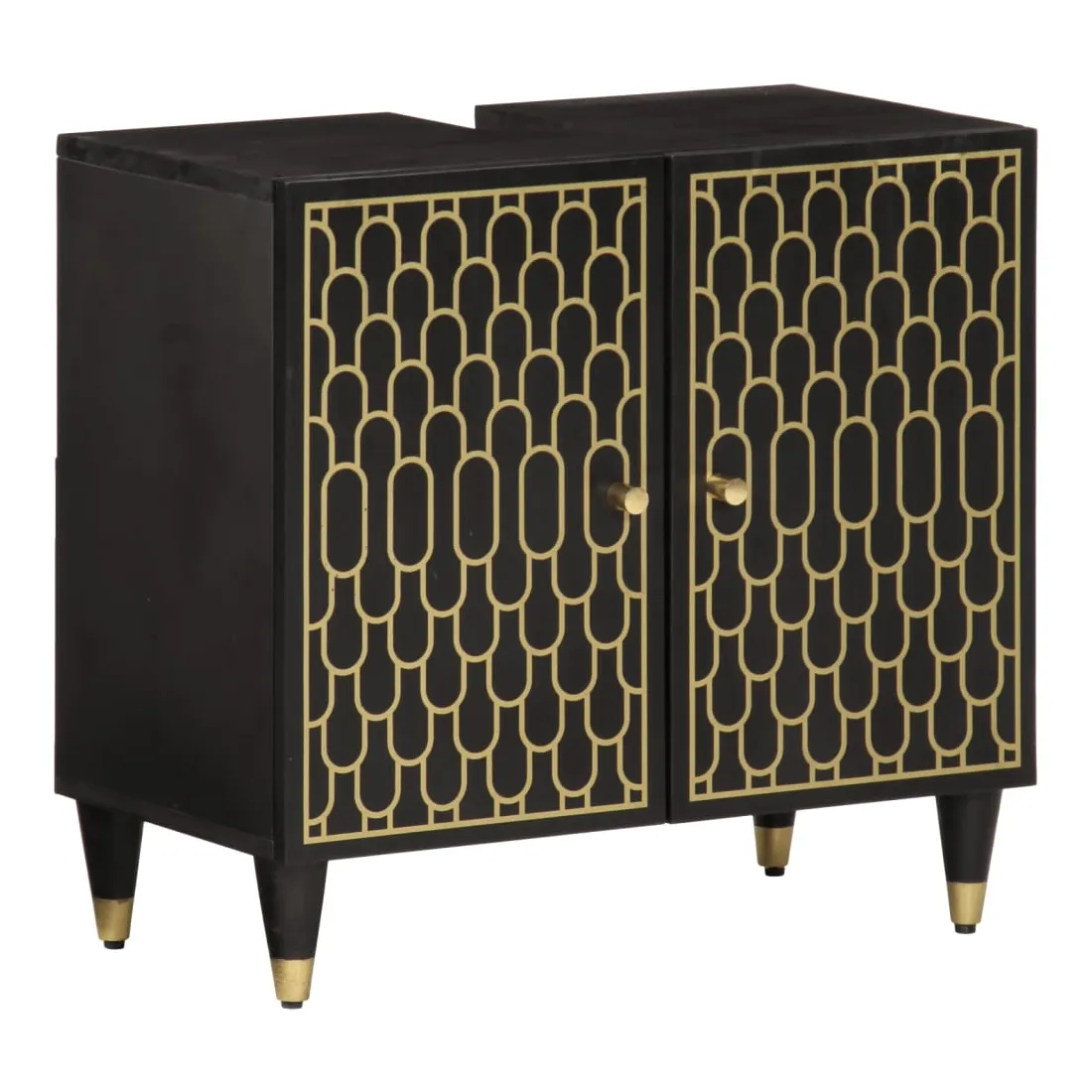 - Matériau : bois de manguier massif avec une finition noire, verre