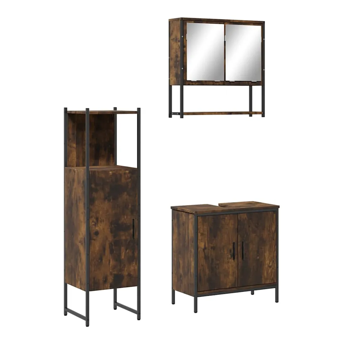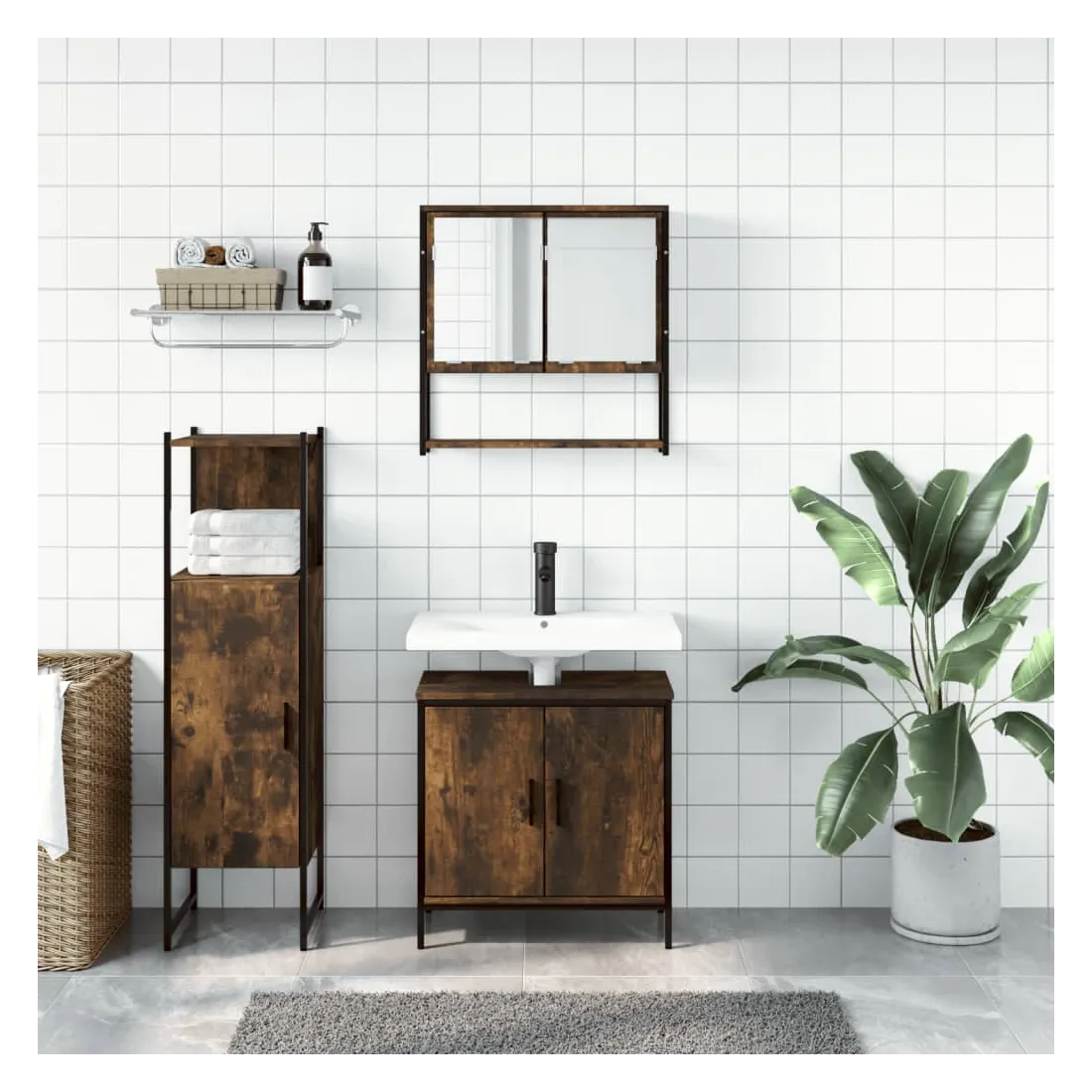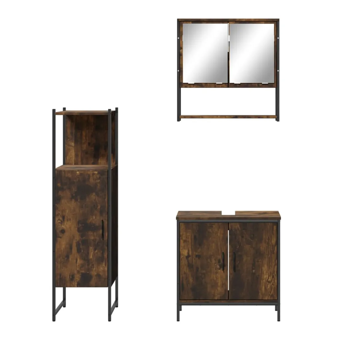 Ensemble de meubles de salle de bain 3 pcs Chêne fumé