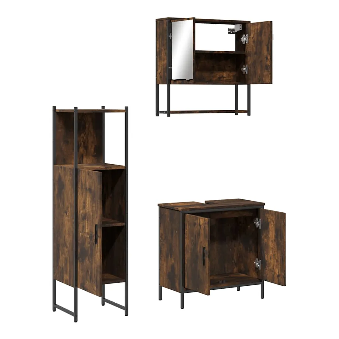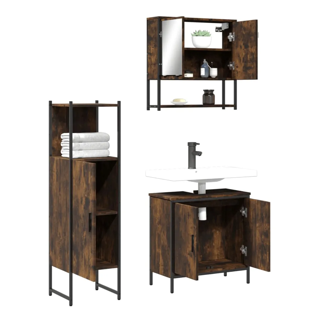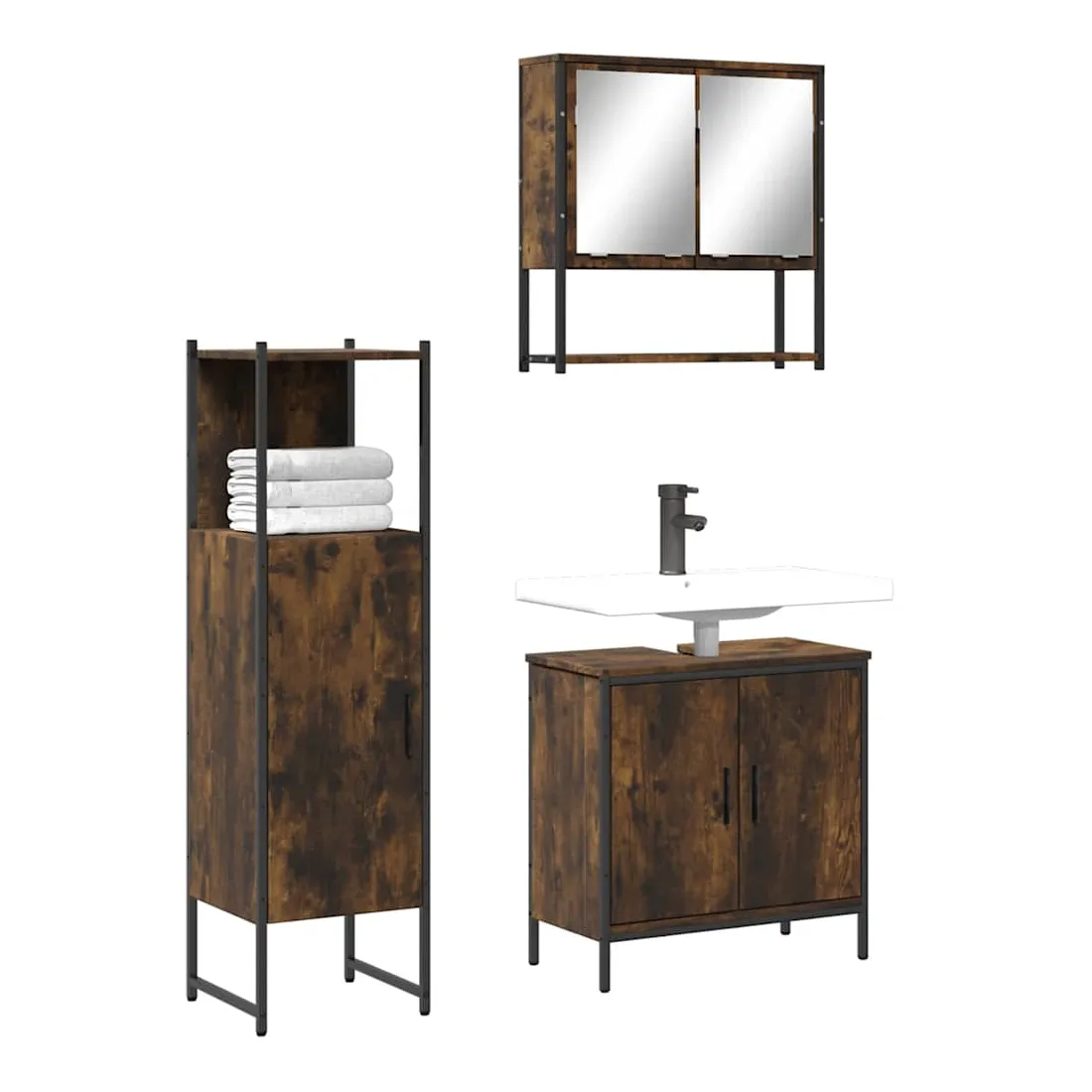 Ensemble de meubles de salle de bain 3 pcs Chêne fumé