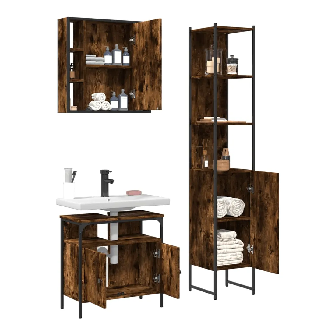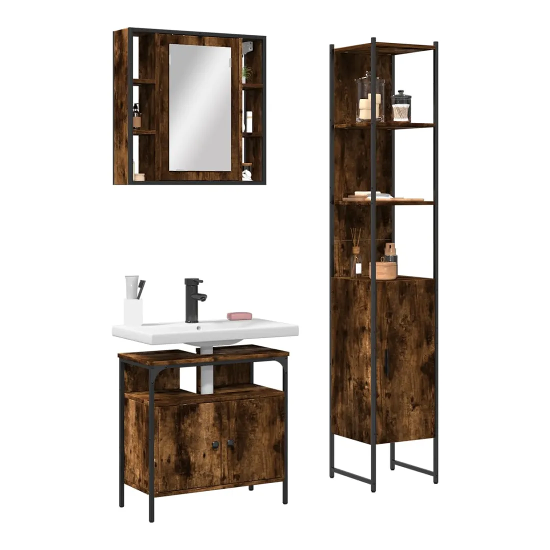 Cet ensemble d'armoires de salle de bain attrayant, avec un grand espace de rangement, présente un design élégant mais pratique. Construction robuste : l'acier revêtu de poudre et le bois d'ingénierie garantissent une construction robuste et offrent un support solide à vos articles.Grand espace de rangement : ce meuble de salle de bain offre un grand espace de rangement pour accueillir facilement vos articles de toilette et articles de bain essentiels tels que savons, shampoing, dentifrice, etc.Étagère de rangement supplémentaire : le miroir de bain est doté d'une étagère inférieure qui offre un espace de rangement supplémentaire pour les accessoires de salle de bains tels que les brosses à dents, les nettoyants pour le visage, les rasoirs, etc.Image claire : la face en verre du miroir offre une réflexion fine et non déformée. Il convient donc pour se maquiller, se raser ou vérifier son costume avant de sortir.Pieds réglables : les pieds réglables munis de coussinets en plastique maintiennent l'armoire de salle de bain en équilibre sur un sol inégal et augmentent sa stabilité. Attention :Pour éviter qu'il ne bascule, ce produit doit être utilisé avec le dispositif de fixation murale fourni. Bon à savoir :Les vis et les chevilles pour l'intérieur du mur ne sont pas incluses. Nous vous conseillons de trouver et d'utiliser des vis et des chevilles adaptées spécifiquement à vos murs. Si vous n'êtes pas sûr, vous pouvez consulter un professionnel. Veuillez lire et suivre chaque étape des instructions.