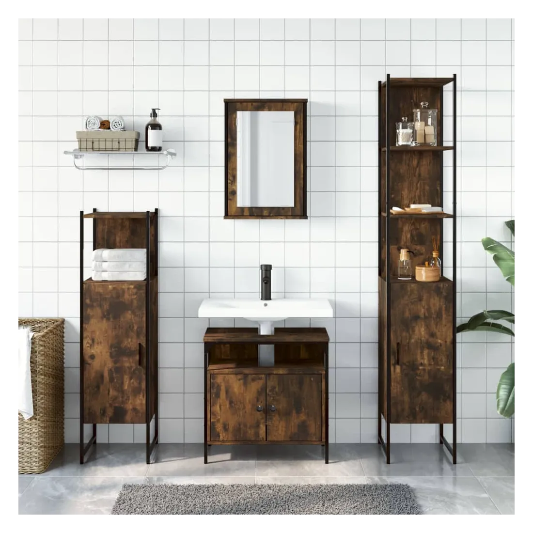 Cet ensemble de meubles de salle de bain pratique, avec un espace de rangement spacieux, est un excellent supplément à votre salle de bain, ce qui lui donne une apparence ordonnée et saisissante ! Matériau durable : le bois d'ingénierie est d'une qualité exceptionnelle avec une surface lisse et présente également résistance, stabilité et résistance à l'humidité.Grand espace de rangement : les meubles de salle de bain offrent diverses options de rangement et un espace spacieux pour ranger des objets dans votre salle de bain.Fonction murale : l'armoire de toilette peut être fixée au mur pour économiser de l'espace au sol, ce qui la rend particulièrement adaptée aux pièces avec un espace limité.Design peu encombrant : la partie supérieure de l'armoire de salle de bains est idéale pour placer le lavabo, ce qui permet d'utiliser pleinement l'espace vacant sous le lavabo.Image claire : la face en verre du miroir offre une réflexion fine et non déformée. Il convient donc pour se maquiller, se raser ou vérifier son costume avant de sortir. Attention :Pour éviter qu'il ne bascule, ce produit doit être utilisé avec le dispositif de fixation murale fourni. Bon à savoir :Les vis et les chevilles pour l'intérieur du mur ne sont pas incluses. Nous vous conseillons de trouver et d'utiliser des vis et des chevilles adaptées spécifiquement à vos murs. Si vous n'êtes pas sûr, vous pouvez consulter un professionnel. Veuillez lire et suivre chaque étape des instructions.