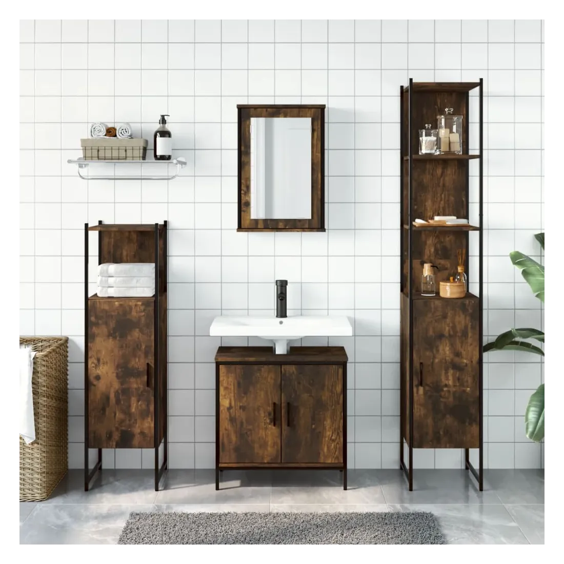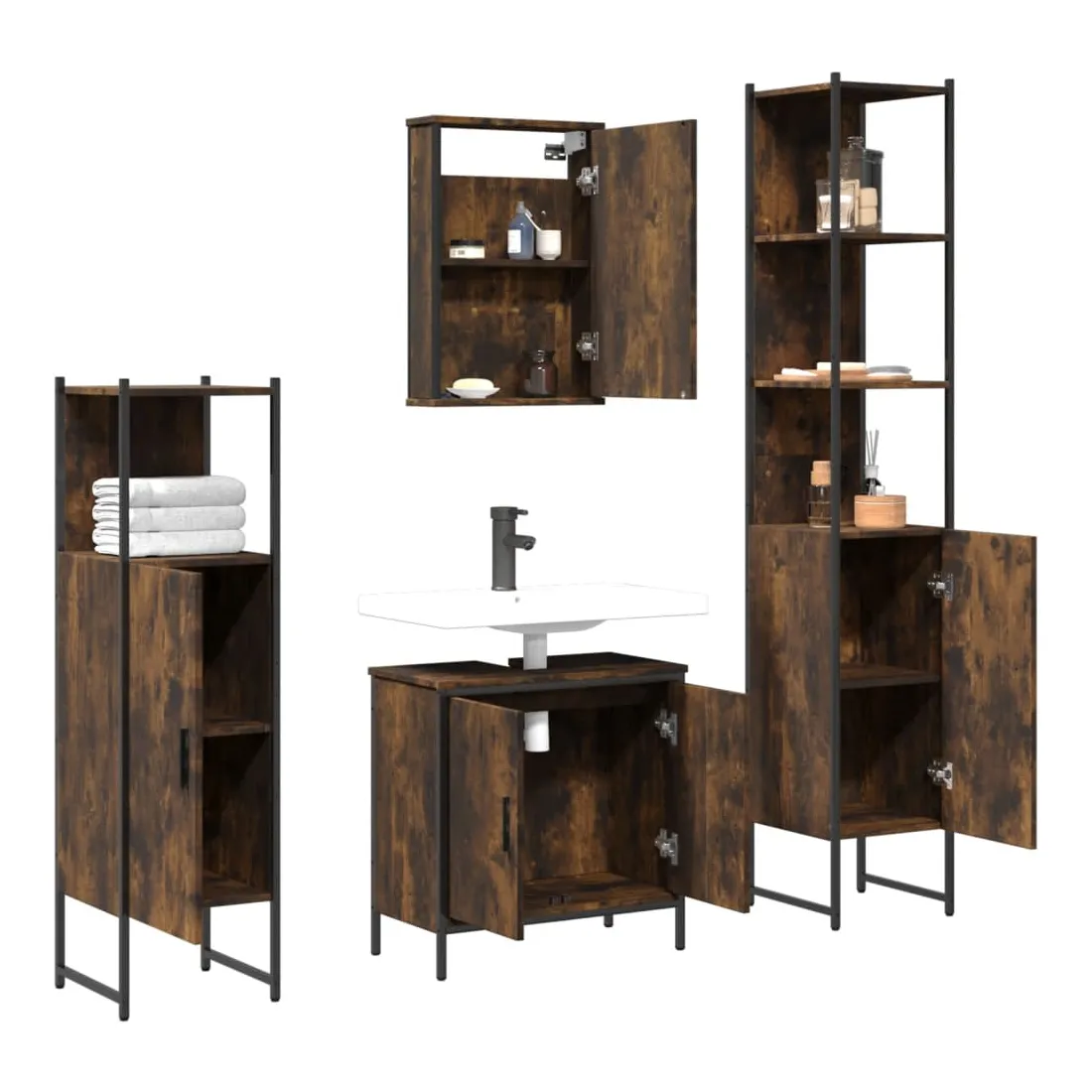 Ensemble de meubles de salle de bain 4 pcs Chêne fumé Bois
