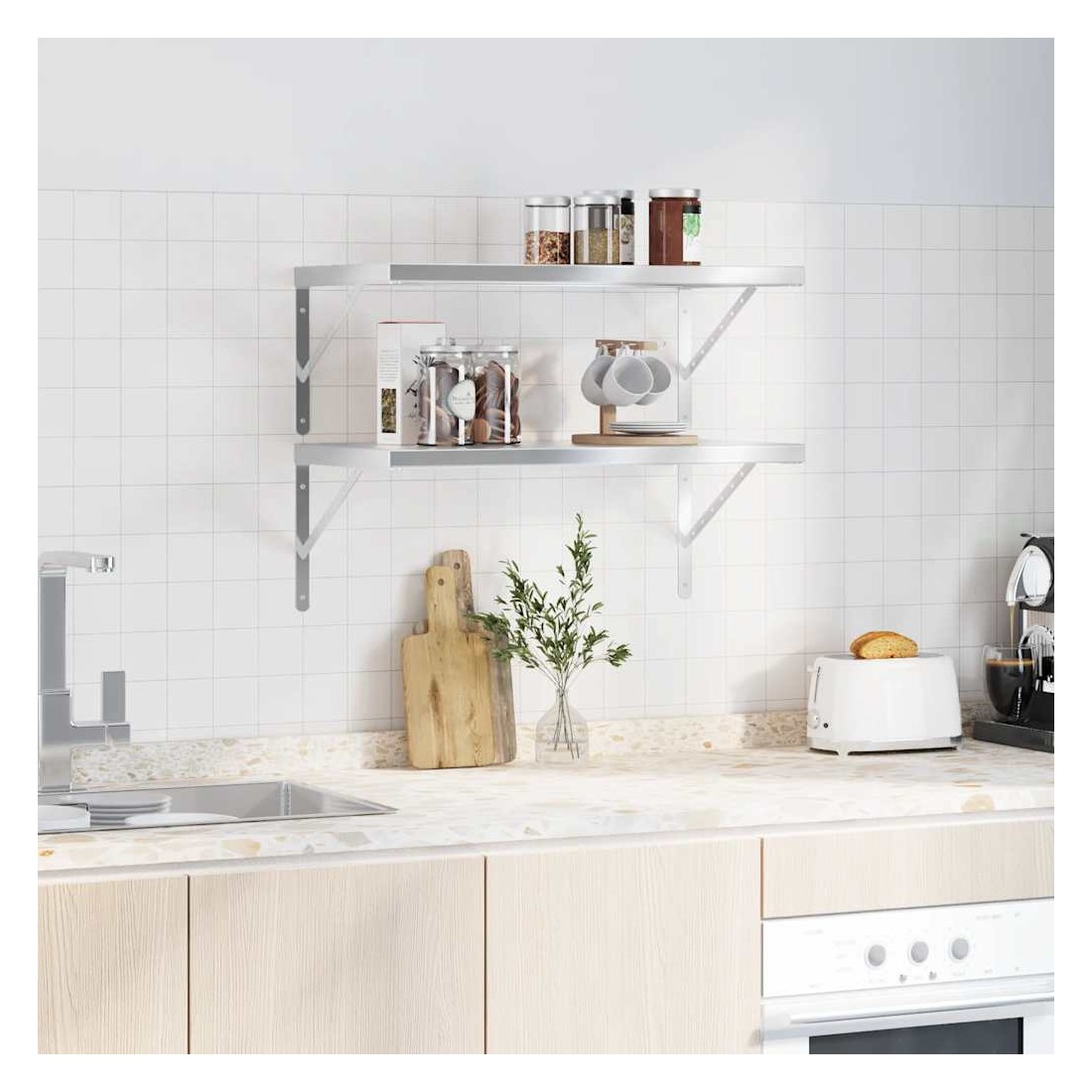 Étagères murales 2 pcs 75x40x3 cm argenté acier inoxydable