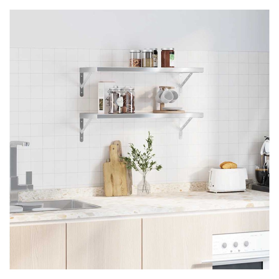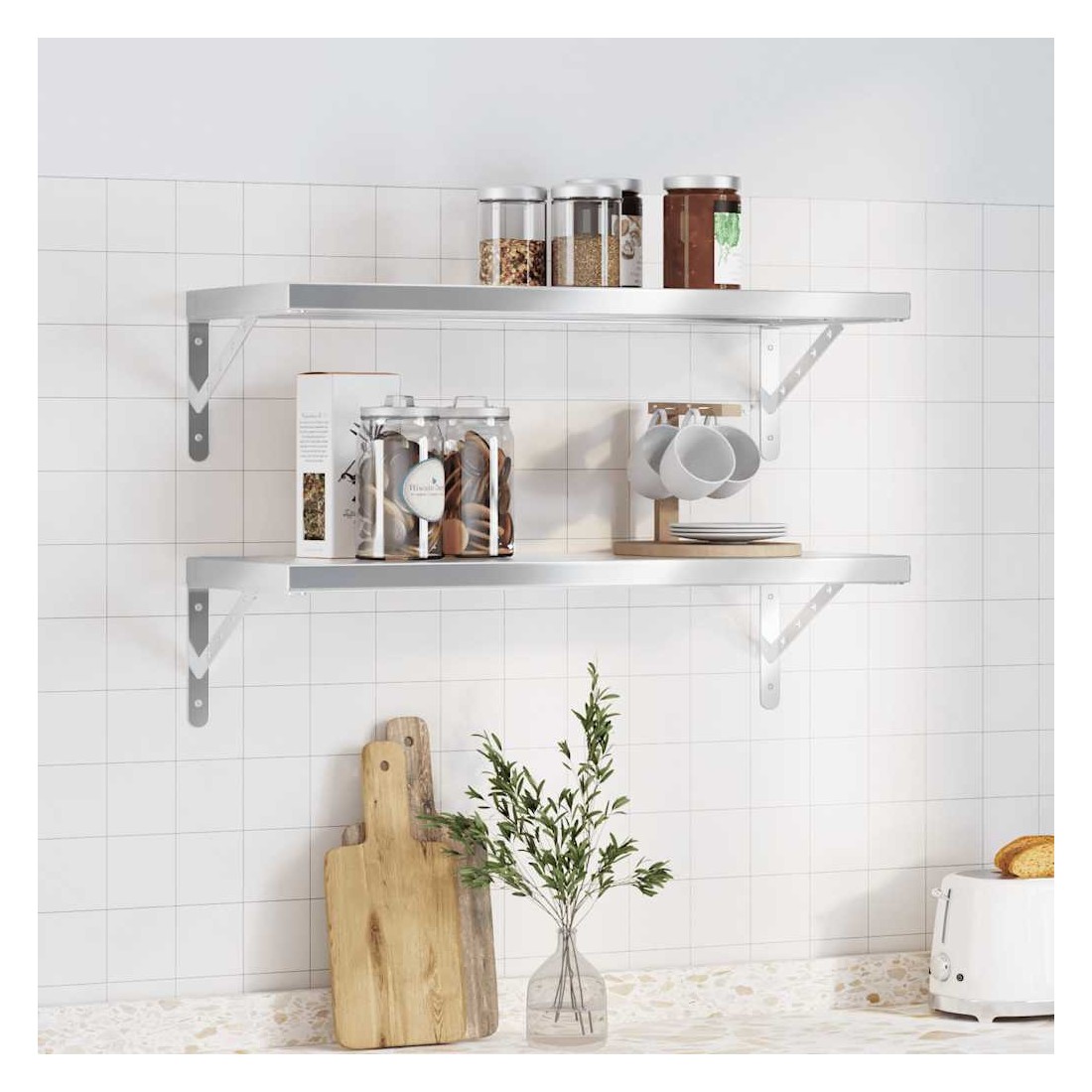 Étagères murales 2 pcs 75x30x3 cm argenté acier inoxydable