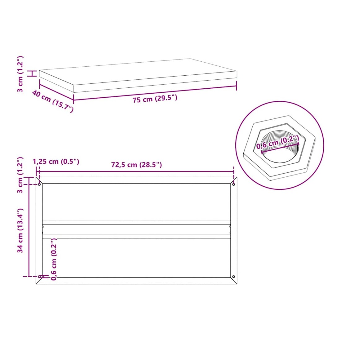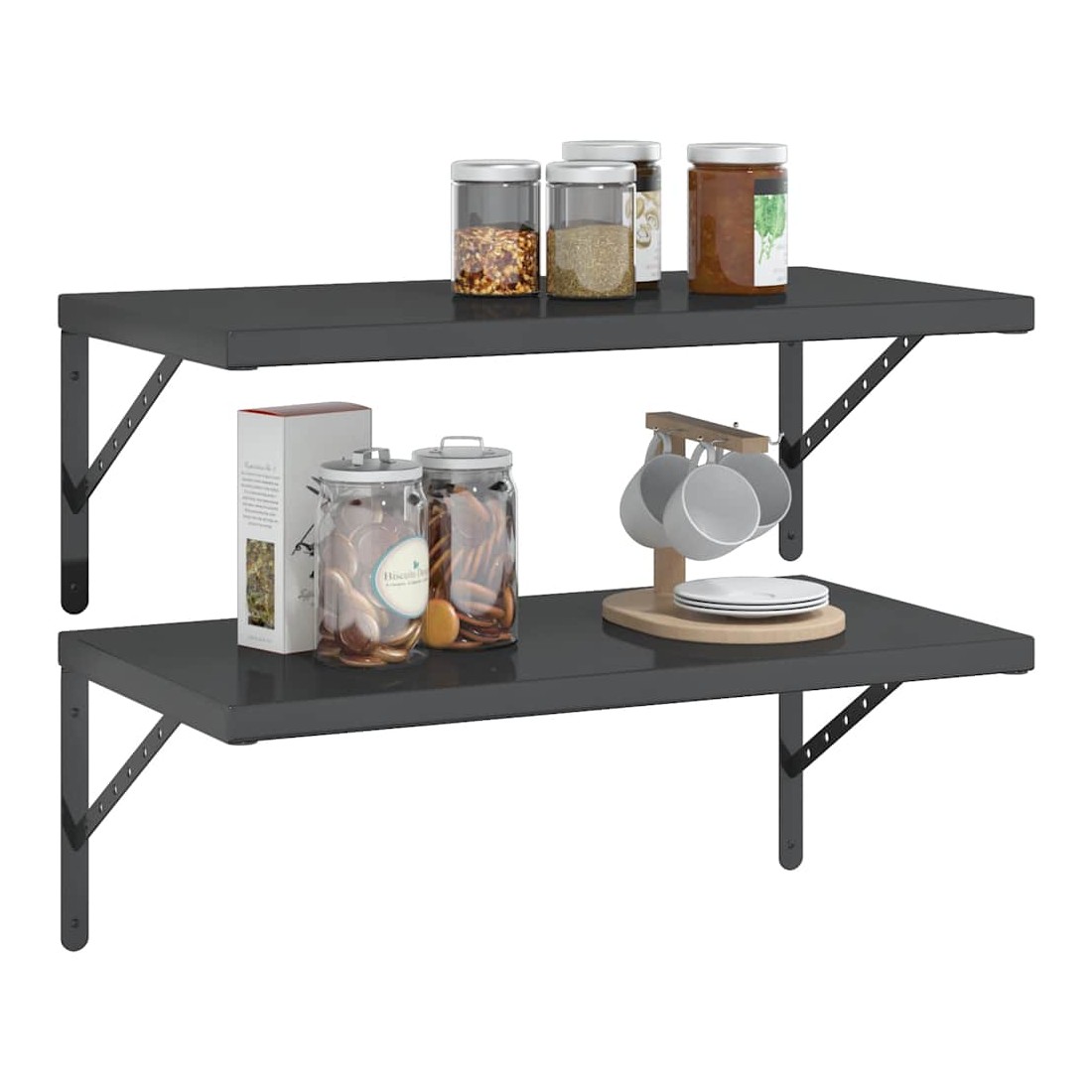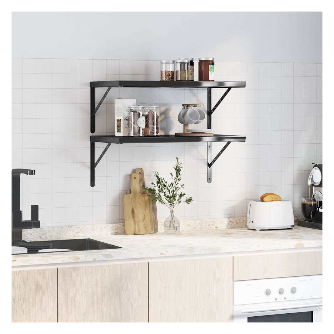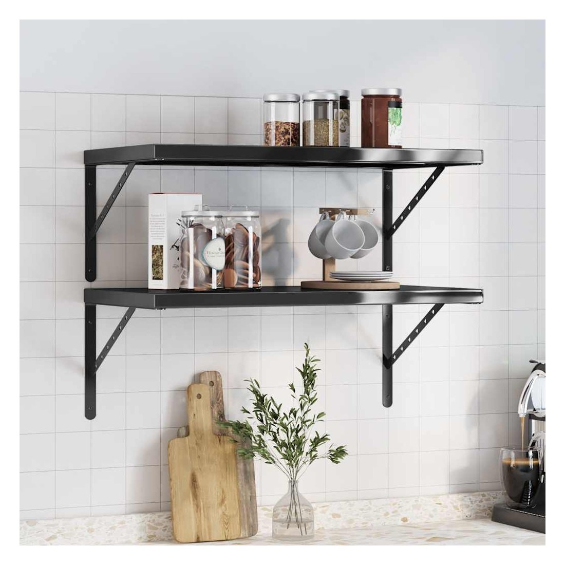 Étagères murales 2 pcs 75x40x3 cm noir acier inoxydable