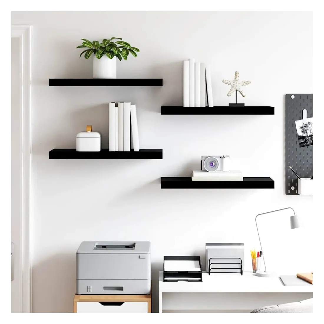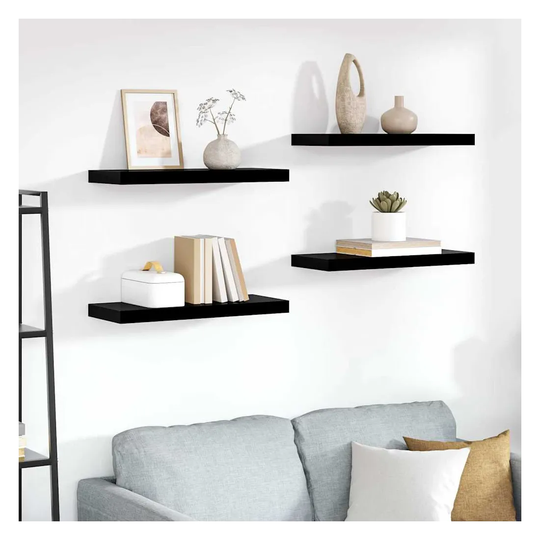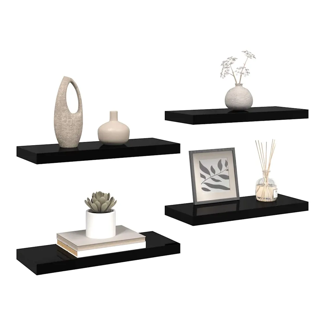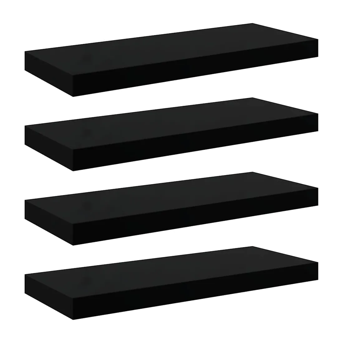 Étagère murale flottante 4 pcs Noir brillant 60x23,5x3,8 cm MDF