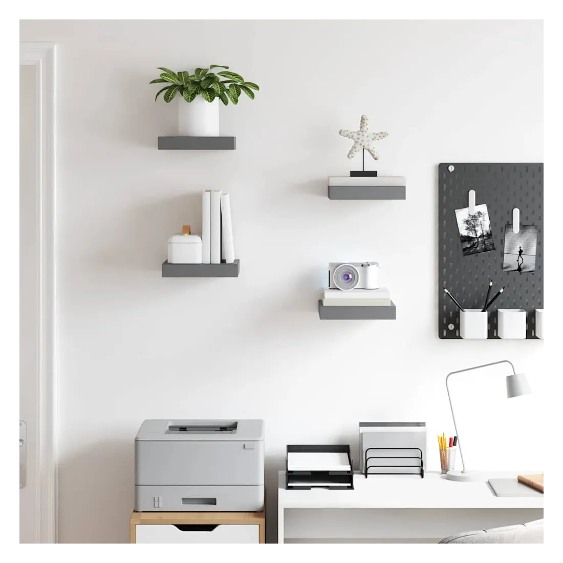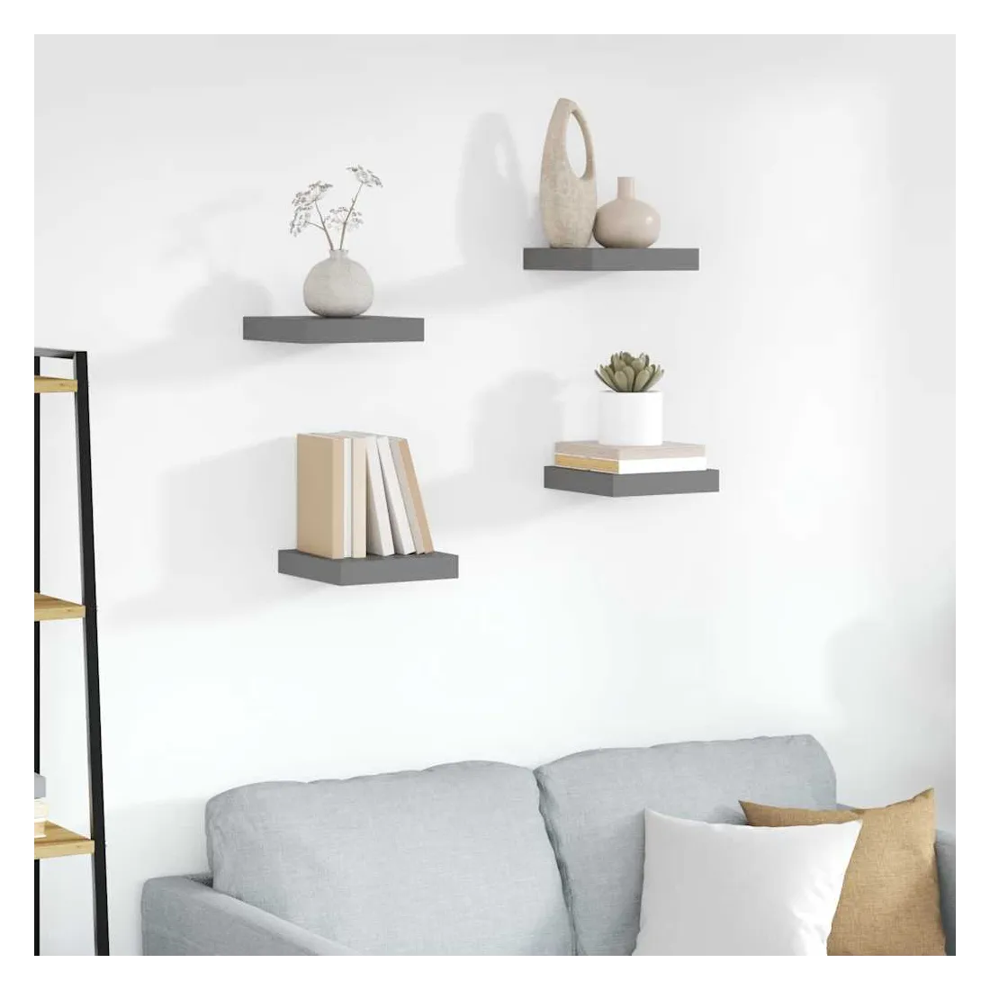 Étagère murale flottante 4 pcs Gris brillant 23x23,5x3,8 cm MDF