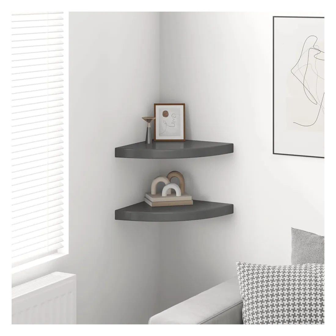 Cet ensemble de 2 étagères d'angle élégantes est idéal pour afficher vos livres préférés, décorations, photos, prix, etc. Cette étagère de présentation, fabriquée en MDF alvéolaire de qualité et en métal solide, est stable et durable. Avec un système de montage invisible, l’étagère murale est facile à installer et sert d’endroit idéal pour stocker des articles tels que des récompenses, des livres, des objets de collection, des ornements, etc. Cette étagère flottante convient à tout décor et transforme un mur vide en une fonctionnalité de design !