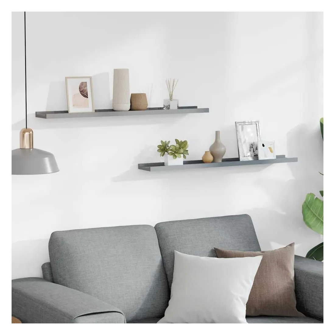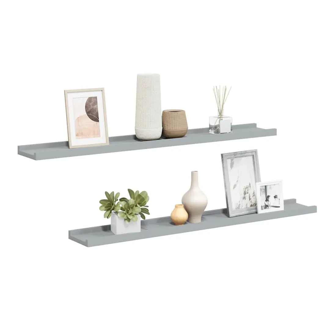 Cet ensemble élégant de rebords d’affichage muraux est conçu pour économiser votre espace au sol, se débarrasser de vos vieux rebords de plancher inclinables. Elles rendent parfaitement vos murs beaux et remplis de vos souvenirs les plus précieux. Fabriquée en MDF laqué, cette étagère est durable et stable. Vous pouvez les monter individuellement ou en rangée sur le mur, offrant ainsi l’espace idéal pour organiser vos cadres photo et décorations. Les photos sont simplement appuyées contre le mur. Le bord avant de la bande de photos protège vos articles décoratifs de tomber. Elle est facile à accrocher avec les trous de serrure situés à l'arrière.