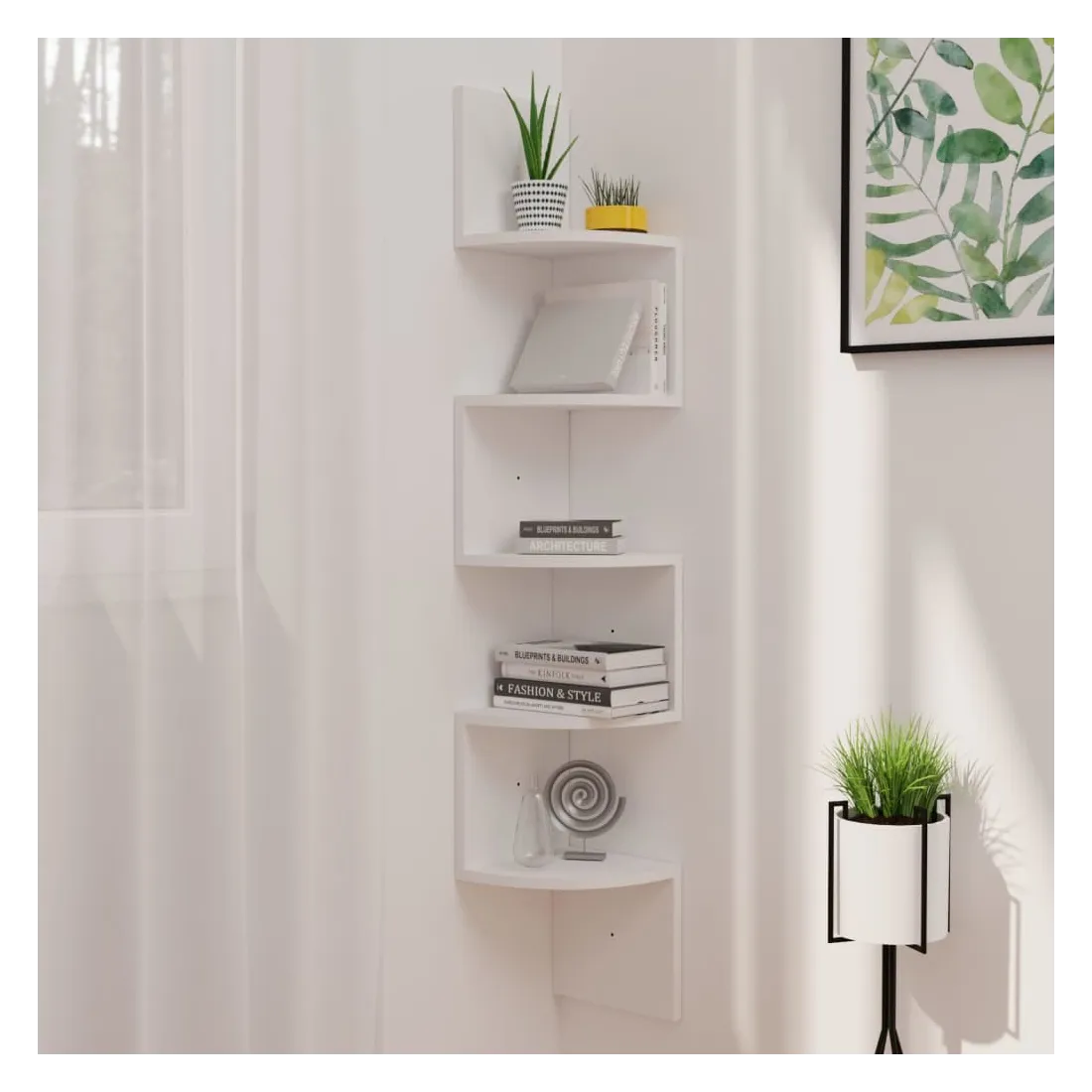 Cette élégante étagère d'angle murale, alliant parfaitement beauté et utilité, convient à votre espace de vie. Cette étagère murale est un accessoire décoratif innovant avec un design unique et des niveaux d'étagères arrondis. Vous pouvez stocker des objets et afficher vos décorations préférées telles que des prix, des livres, des objets de collection, des ornements, etc. La construction de cette étagère suspendue est robuste et durable, garantissant des années de service. Chic et raffinée, cette étagère de présentation exploite au mieux l'espace d'angle.