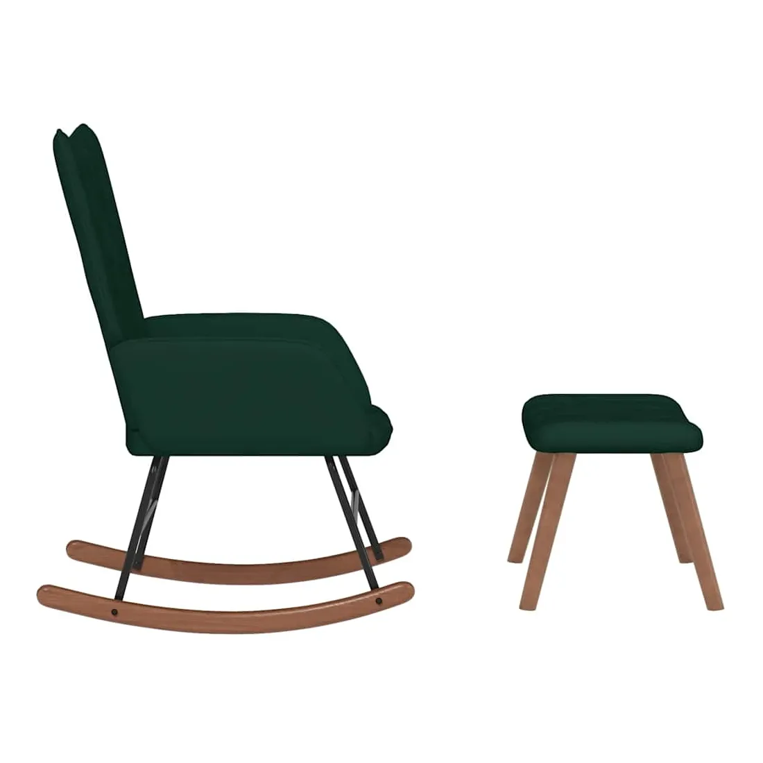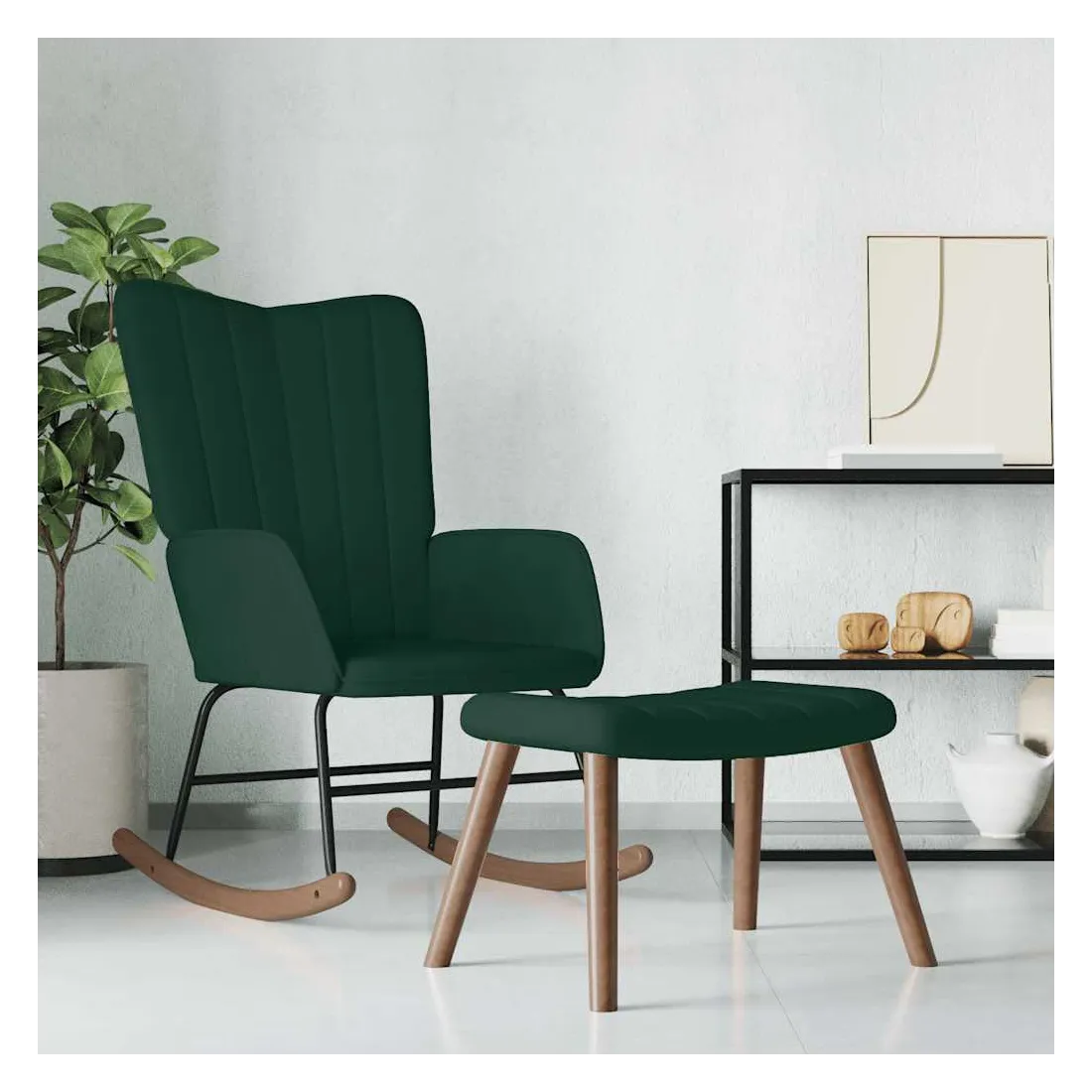 Cette chaise à bascule avec tabouret est un excellent supplément à votre décor existant. Ce fauteuil, avec quelques lignes sur son dossier, est esthétique. Grâce à sa mousse rembourrée recouverte de velours doux au toucher, vous pourrez profiter d'un confort optimal pendant votre temps d'assise. Avec la conception de longs rails à bascule, la chaise de relaxation ne basculera pas facilement. Soutenue par un cadre et des pieds en acier, ainsi que par des rails à bascule en bois, la chaise de salon avec repose-pied est stable et durable.