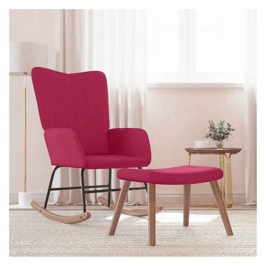 Cette chaise à bascule avec tabouret est un excellent supplément à votre décor existant. Ce fauteuil, avec quelques lignes sur son dossier, est esthétique. Grâce à sa mousse rembourrée recouverte de velours doux au toucher, vous pourrez profiter d'un confort optimal pendant votre temps d'assise. Avec la conception de longs rails à bascule, la chaise de relaxation ne basculera pas facilement. Soutenue par un cadre et des pieds en acier, ainsi que par des rails à bascule en bois, la chaise de salon avec repose-pied est stable et durable.