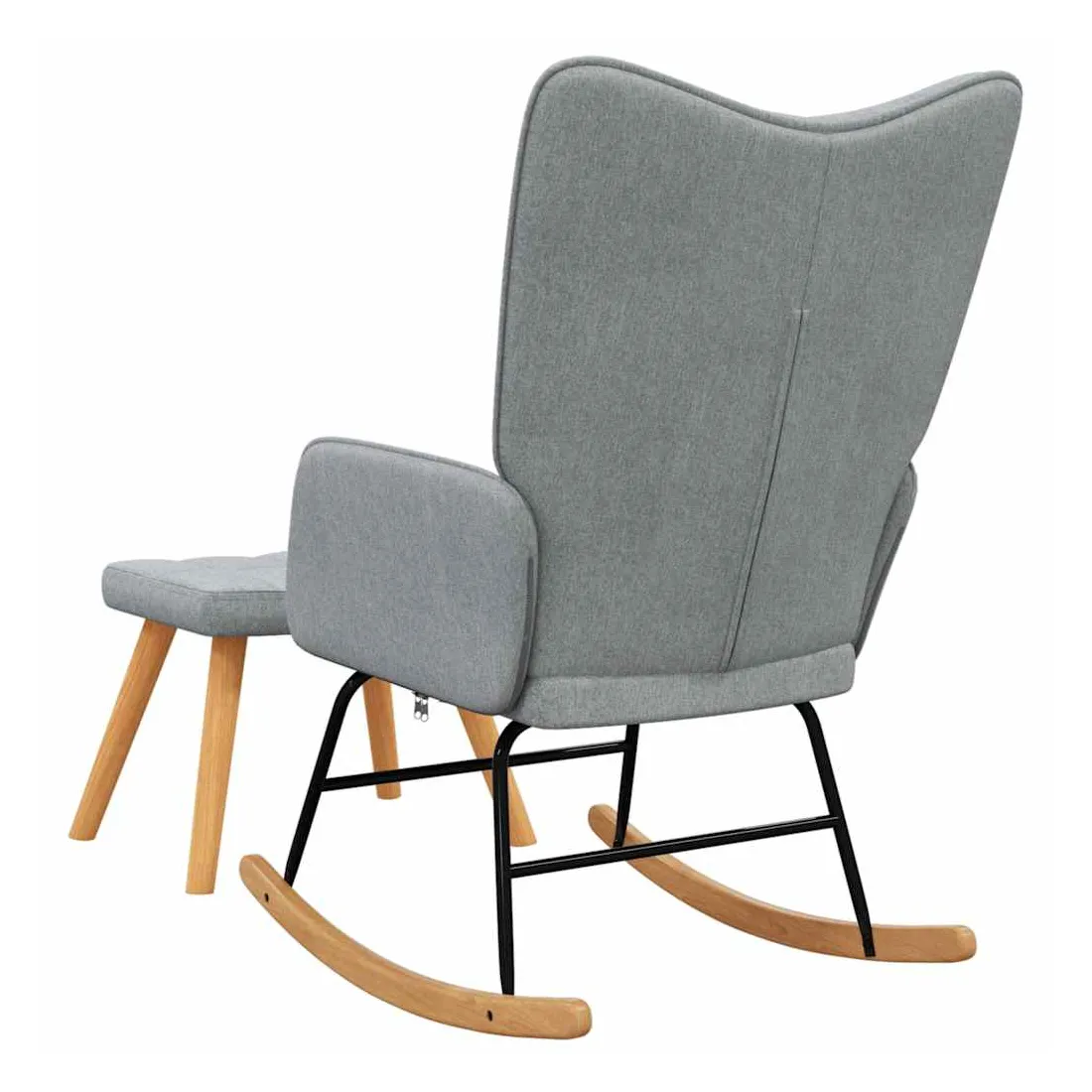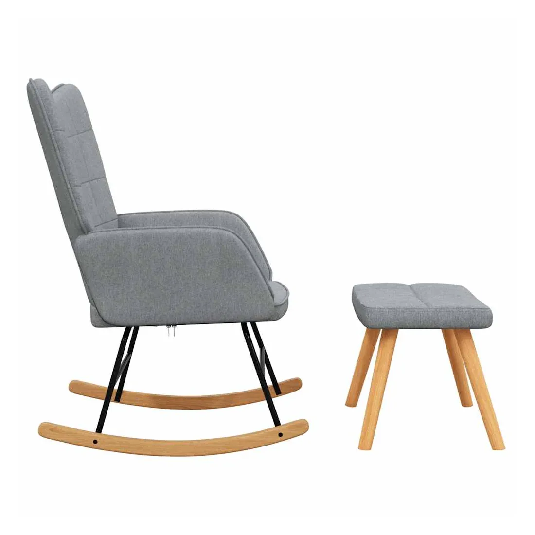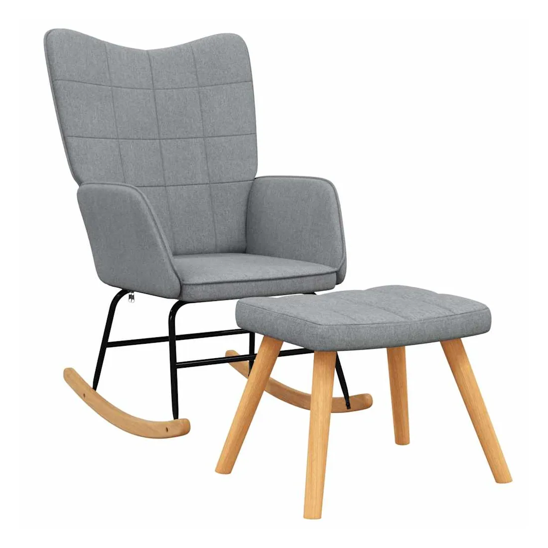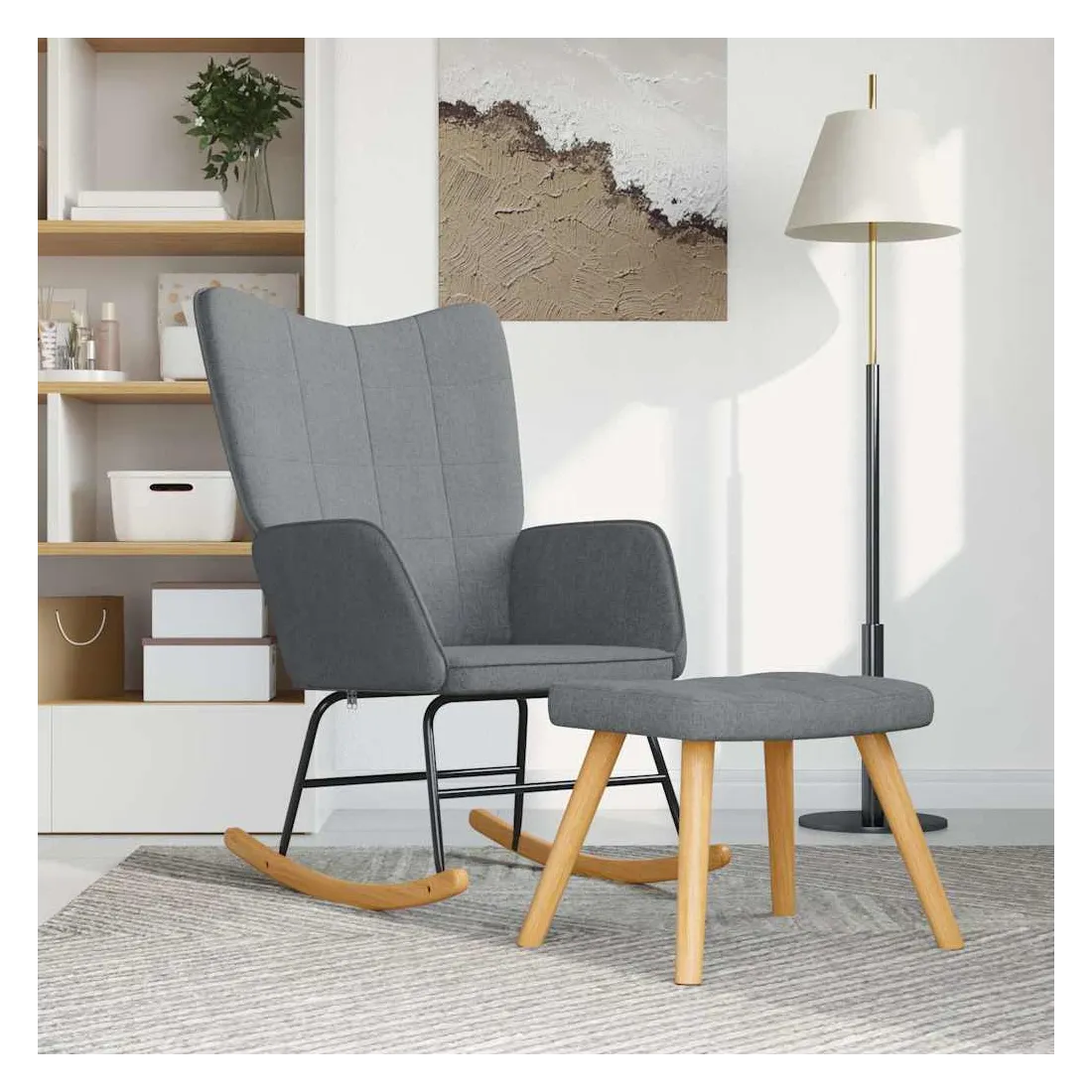 Cette chaise à bascule avec tabouret, au design chic et élégant, apportera une touche de modernité à votre décoration. Dotée de quelques blocs, cette chaise de relaxation est esthétique. Grâce à sa mousse rembourrée recouverte d'un tissu doux au toucher, vous pourrez profiter d'un confort optimal pendant votre temps d'assise. Avec la conception de longs rails à bascule, le fauteuil ne basculera pas facilement. De plus, soutenue par un cadre et des pieds en acier, ainsi que par des rails à bascule en bois, la chaise de salon avec tabouret est stable et durable.