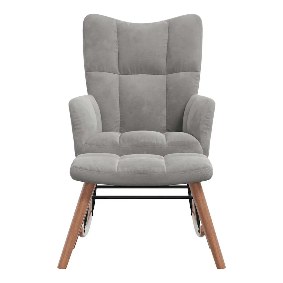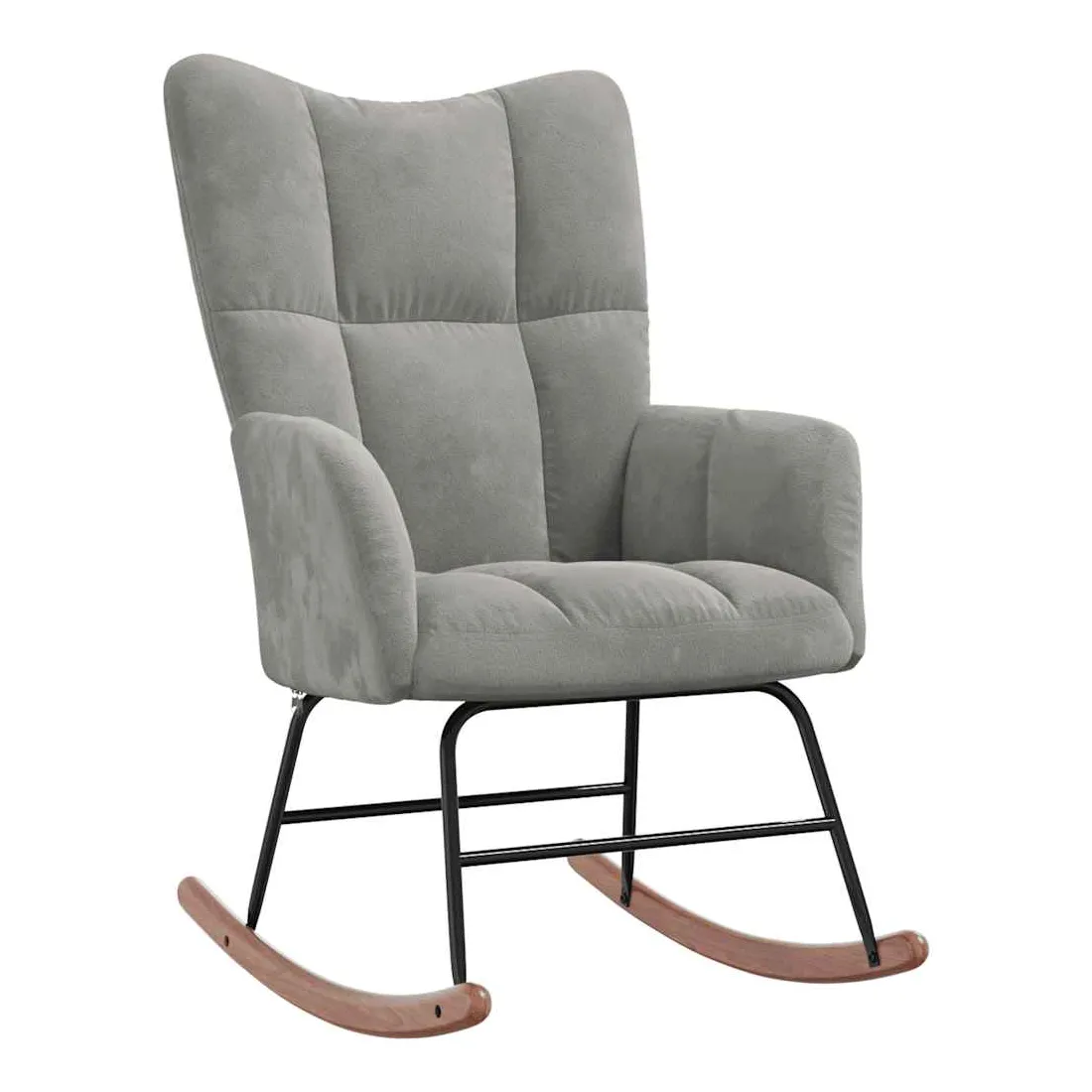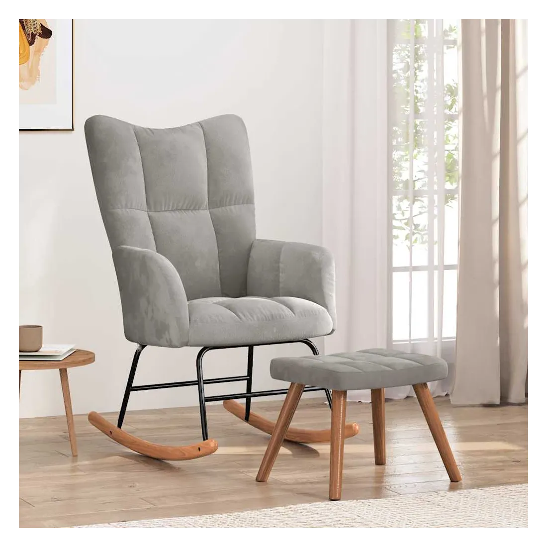 Cette chaise à bascule avec tabouret, au design chic et élégant, apportera une touche de modernité à votre décoration. Dotée de quelques blocs, cette chaise de relaxation est esthétique. Grâce à sa mousse bien rembourrée recouverte de velours doux au toucher, vous pourrez profiter d'un confort optimal pendant votre temps d'assise. Avec la conception de longs rails à bascule, le fauteuil ne basculera pas facilement. De plus, soutenue par un cadre et des pieds en acier, ainsi que par des rails à bascule en bois, la chaise de salon avec un repose-pied est stable et durable.